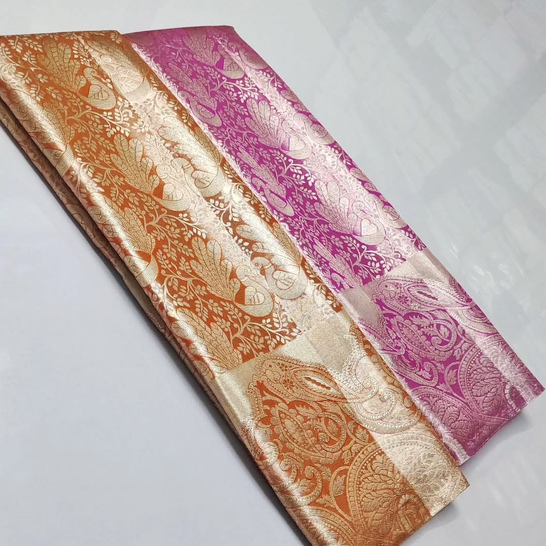 Pretty one pure kanchipattu tissue pastel meena brocade designs