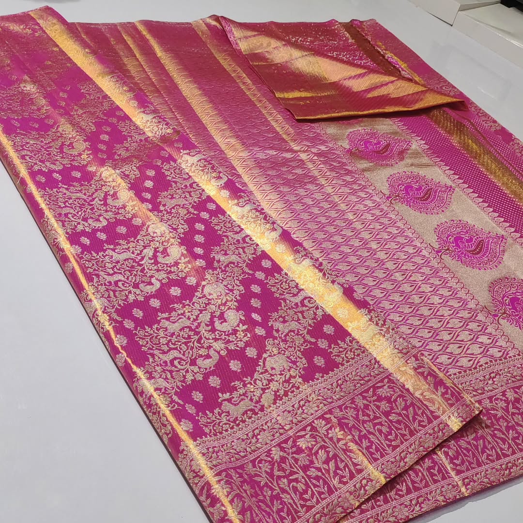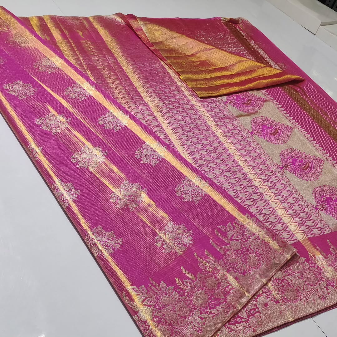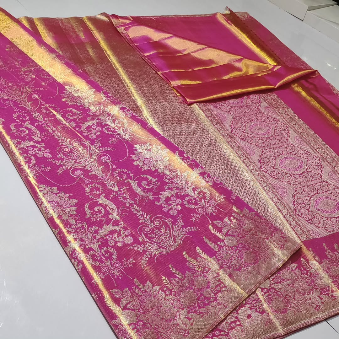 Pretty one pure kanchipattu tissue pastel meena brocade designs