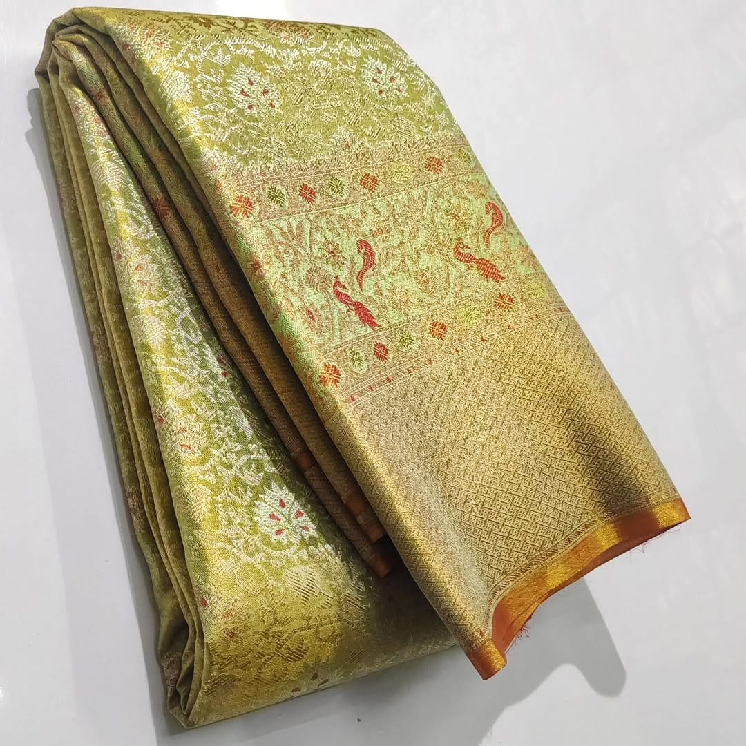 Exclusive wedding collection pure kanchipattu tissue edge to edge Meenakari patterns