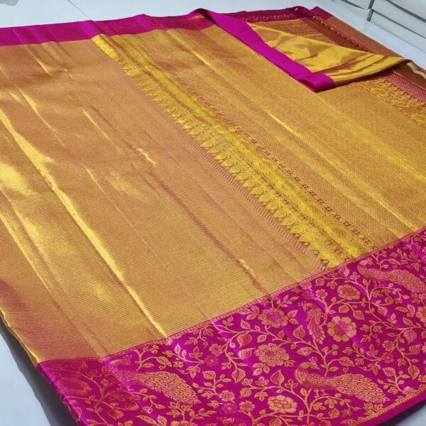 Pure kanchipattu tissue edge-to-edge Meenakari emboss designs