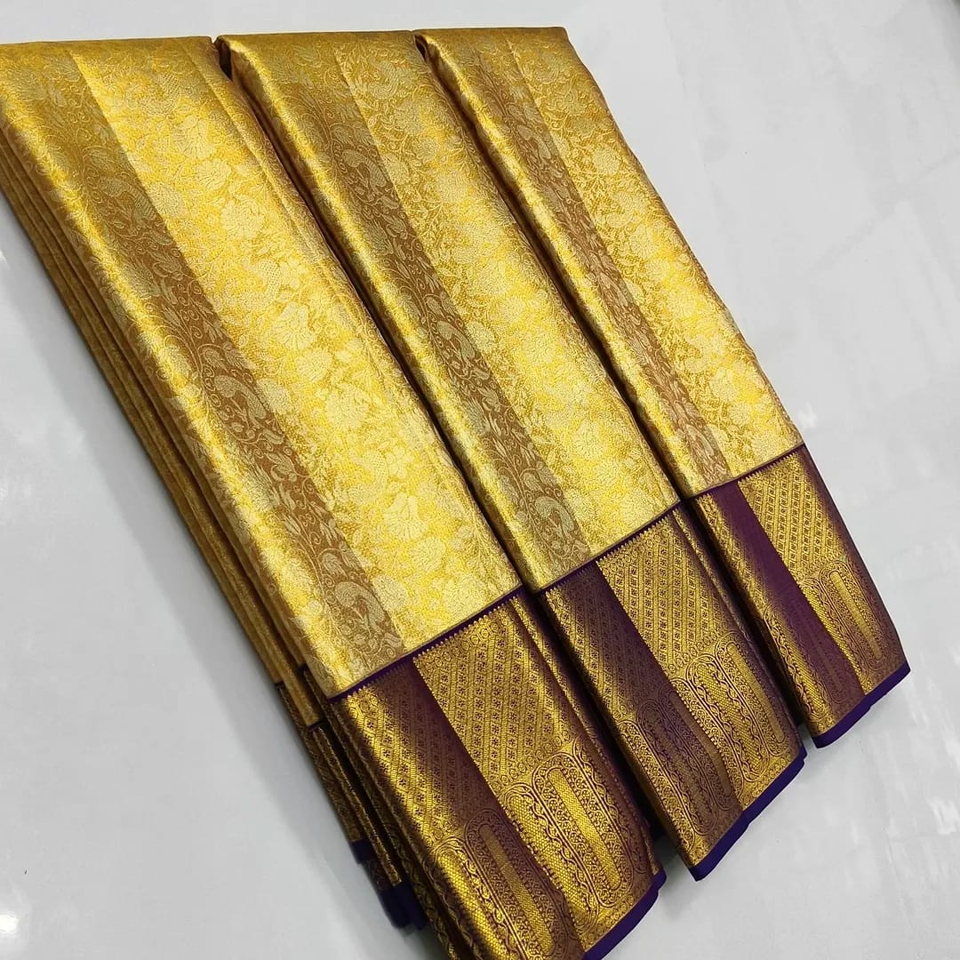 New arrival pure kanchipattu tissue gold with violet combination pure silk sarees
