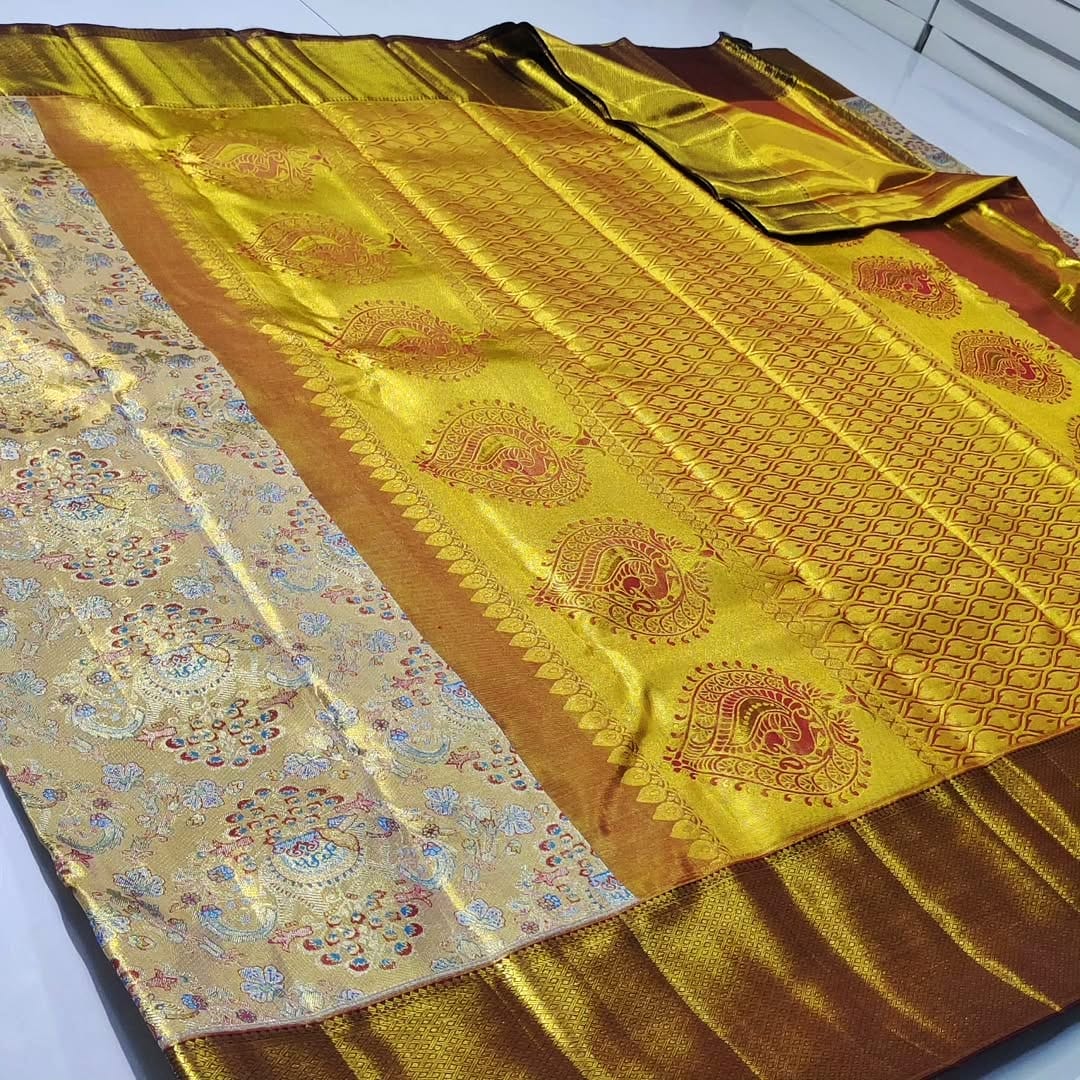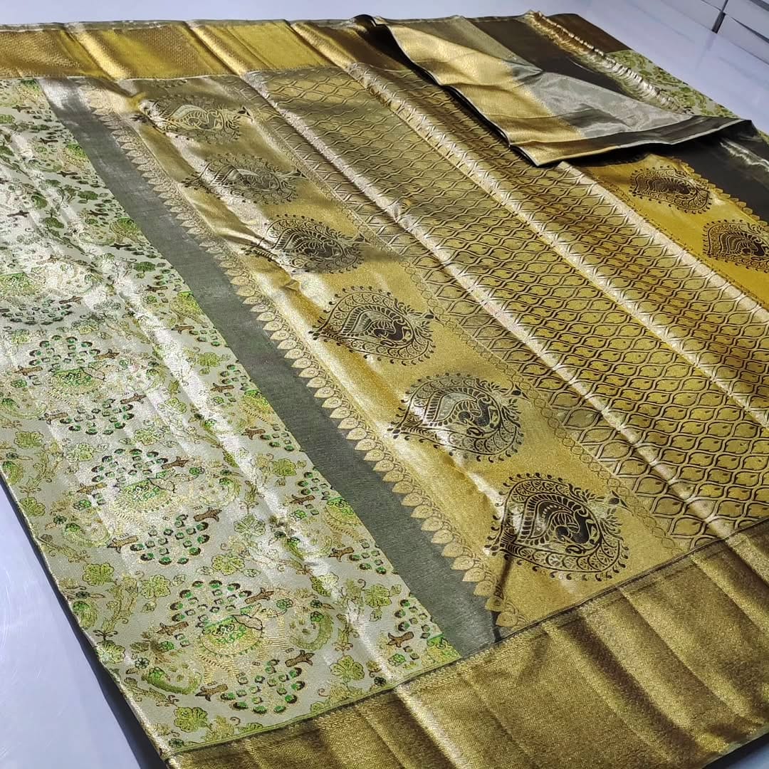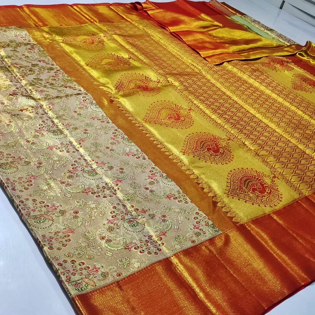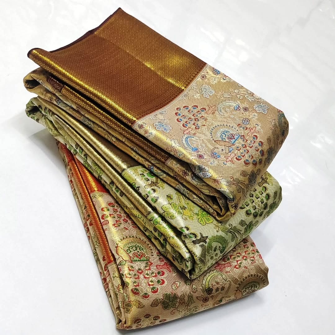 New edition pure kanchipattu tissue Meenakari brocade designs