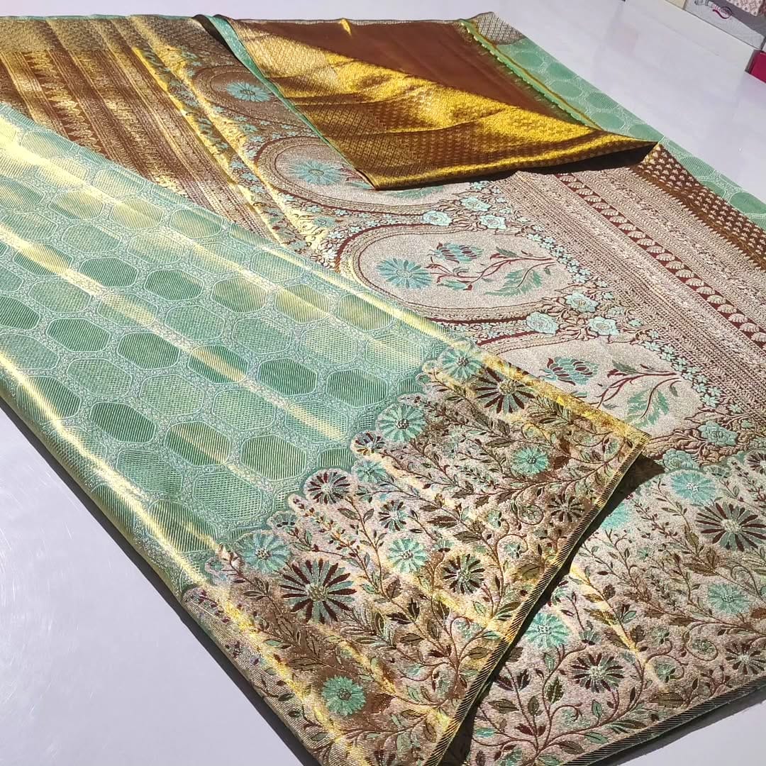 Unlike regular silk sarees, tissue silk sarees offer a luxurious metallic finish that enhances your presence instantly. Whether you’re the bride, sister of the bride, or attending a grand function, this saree ensures all eyes are on you.