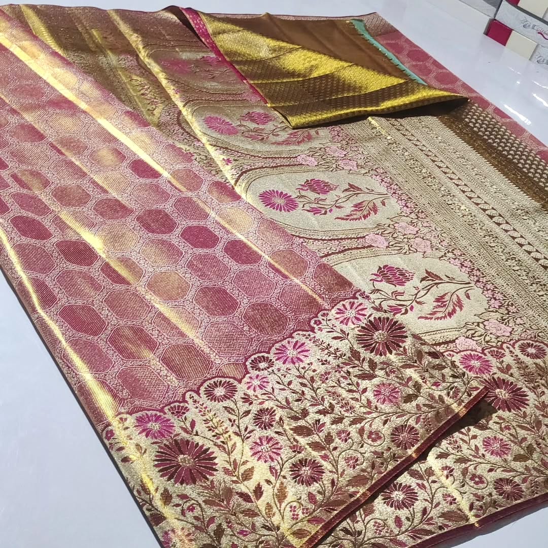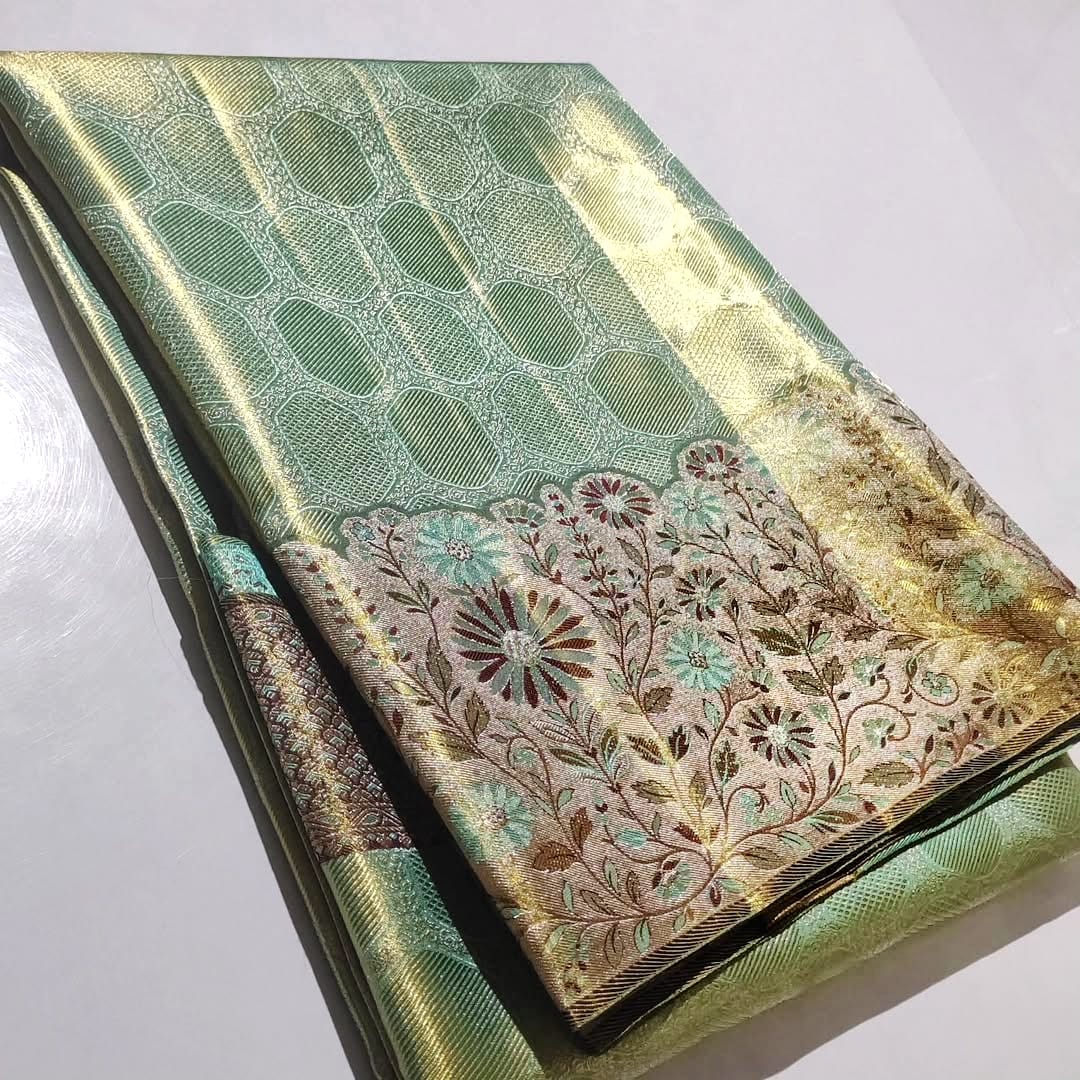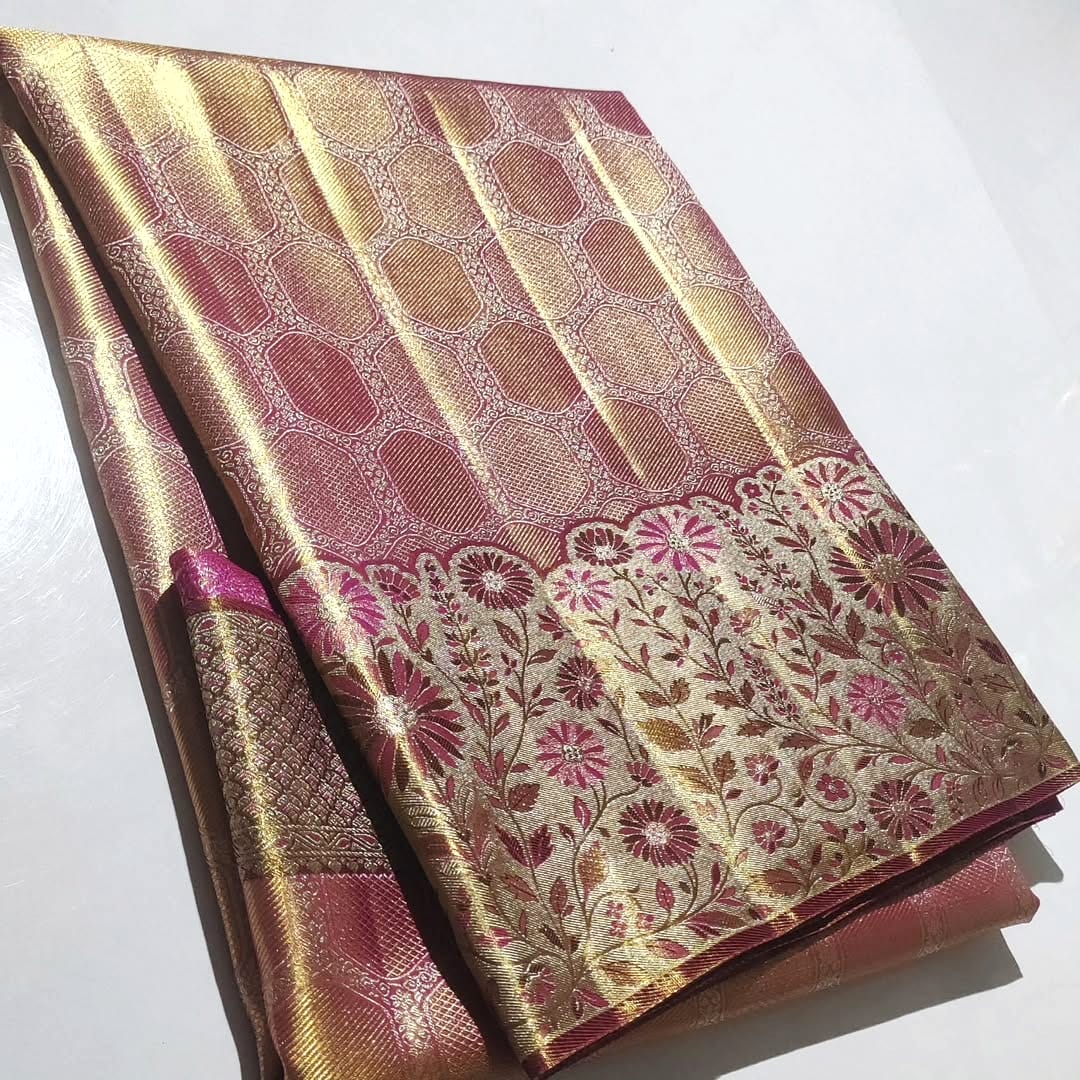 New arrival pure kanchipattu tissue edge-to-edge Meenakari bridal wear silk sarees✨