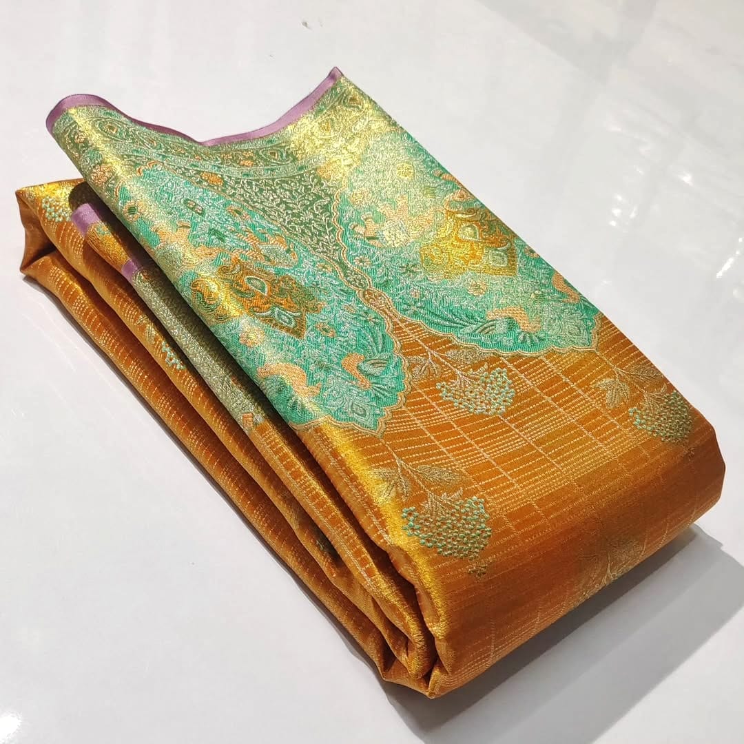 Classic one pure kanchipattu tissue edge to edge Meenakari patterns