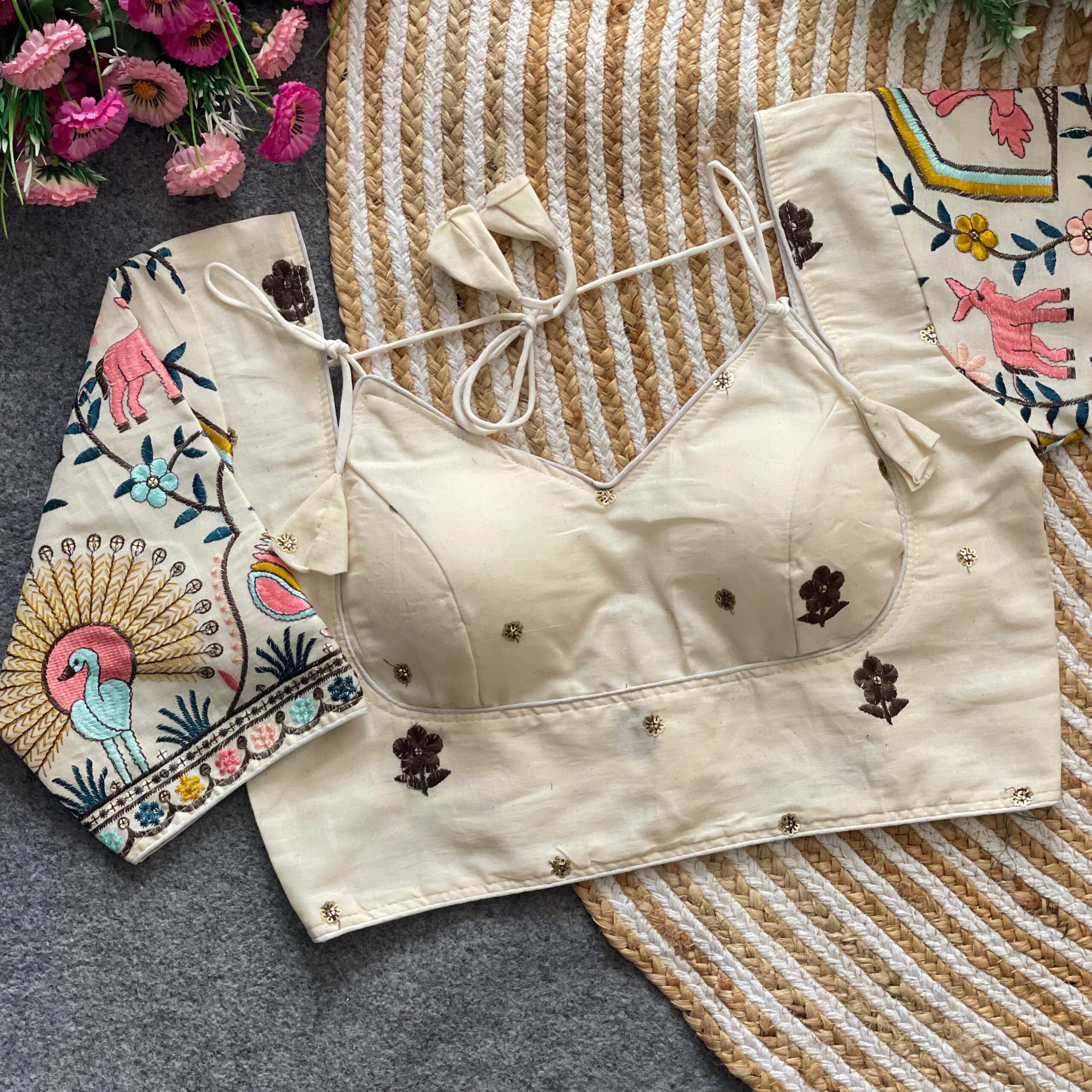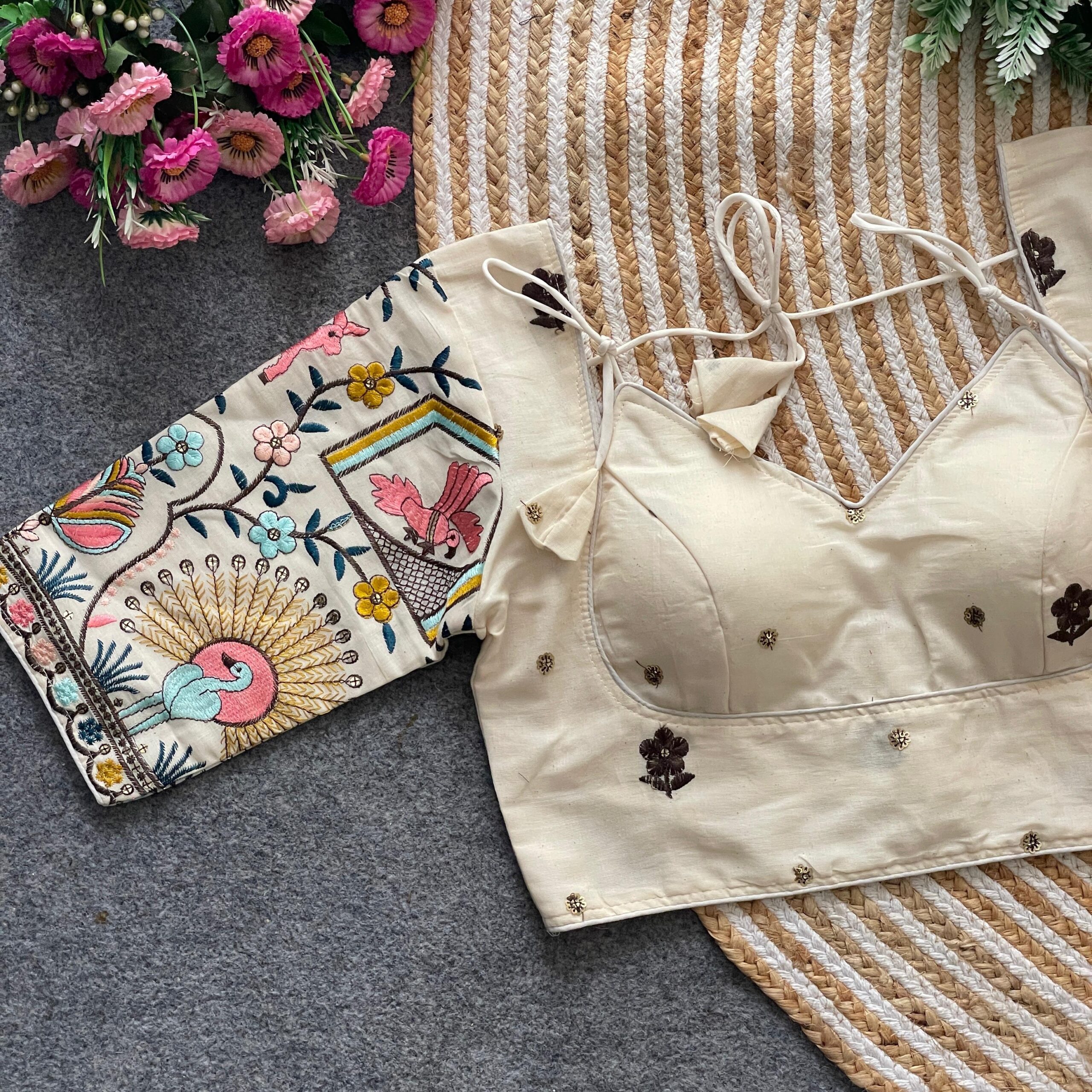 *DESIGN*:- Beautiful Partywear Blouse, Heavy Stitching, Heavy Padded, With Beautiful Sleeves, BACK open Style
