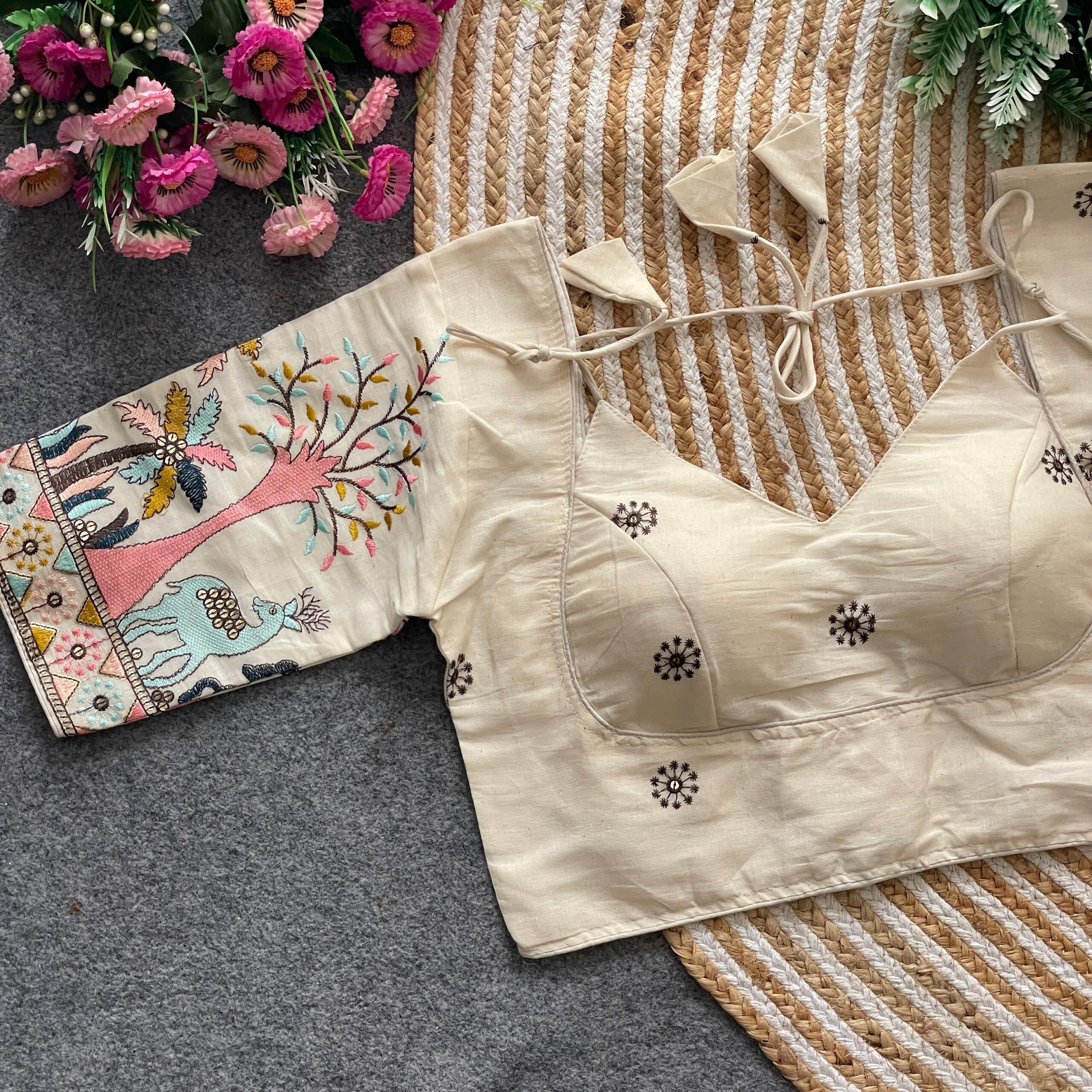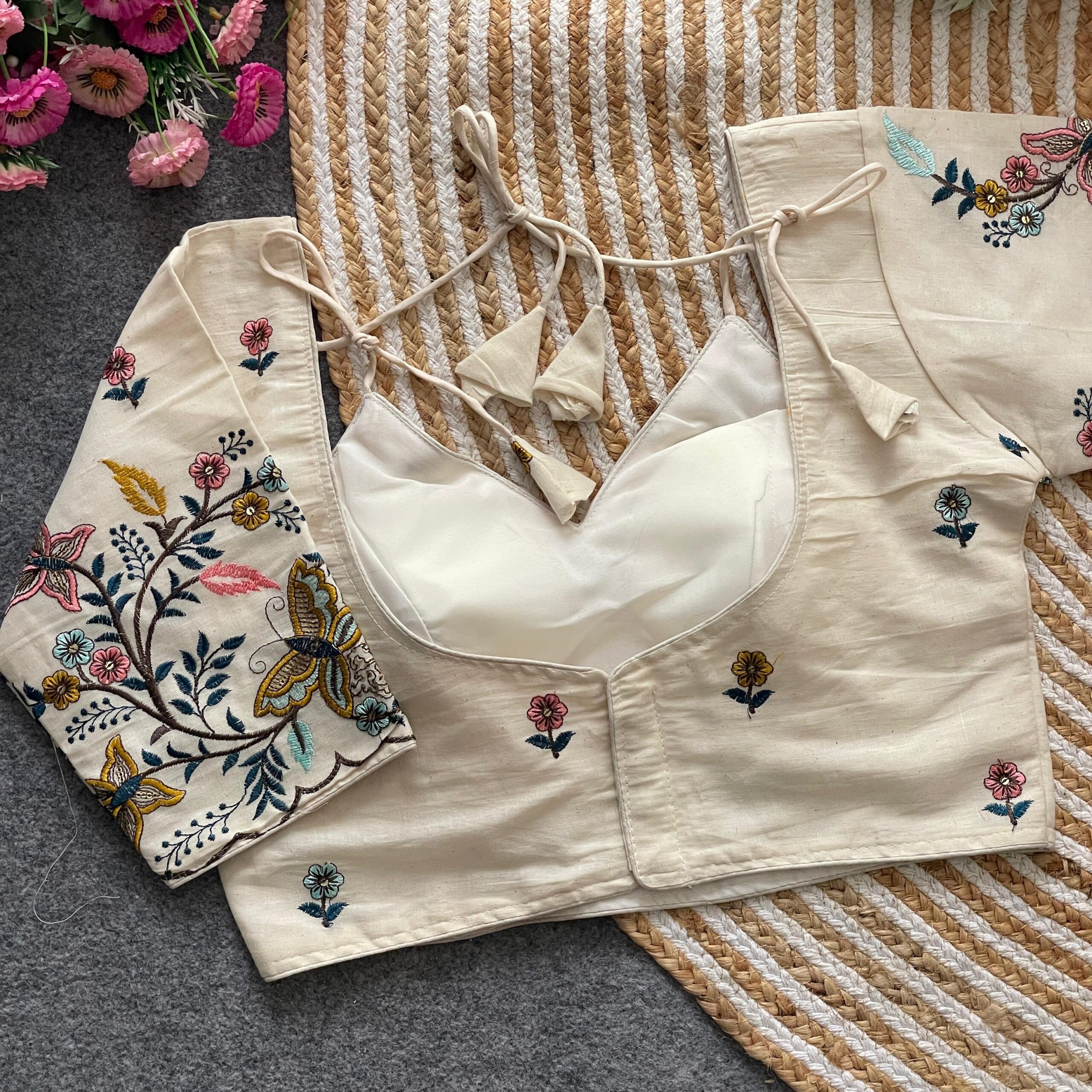*Beautiful Khadi Cotton With Embroidered Blouse*