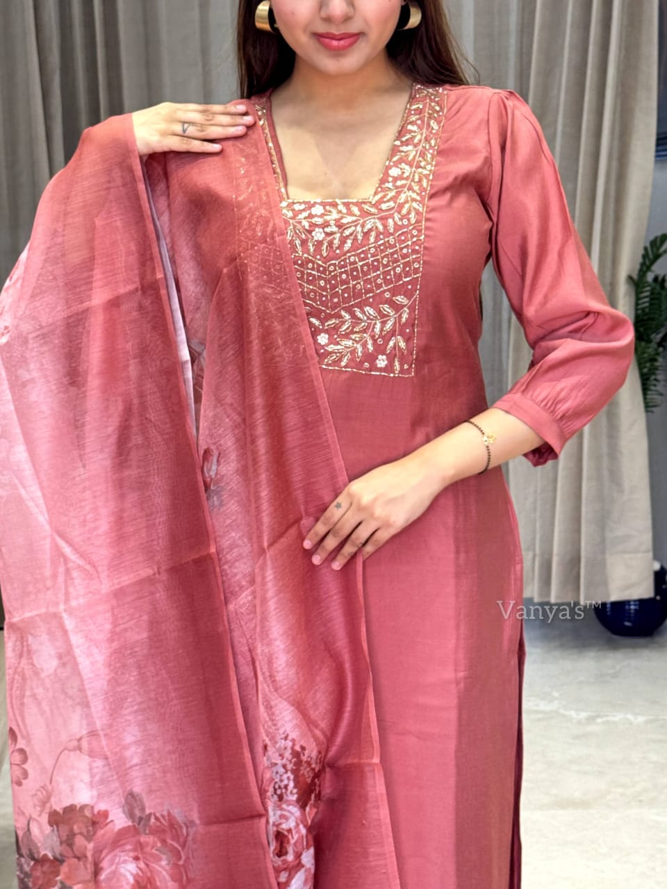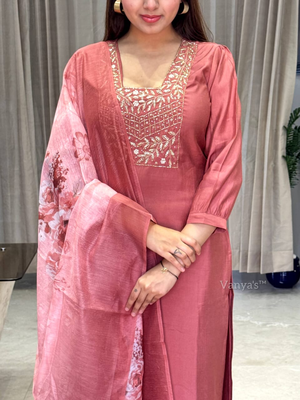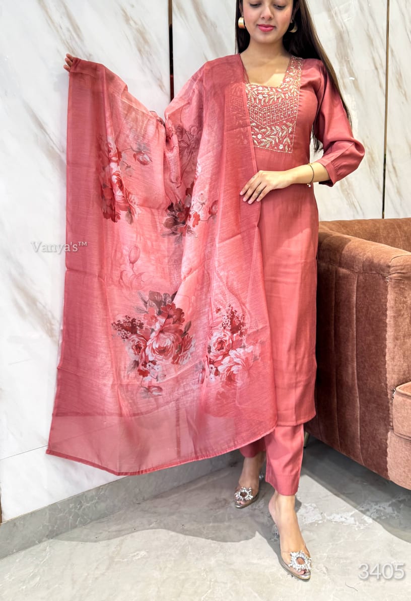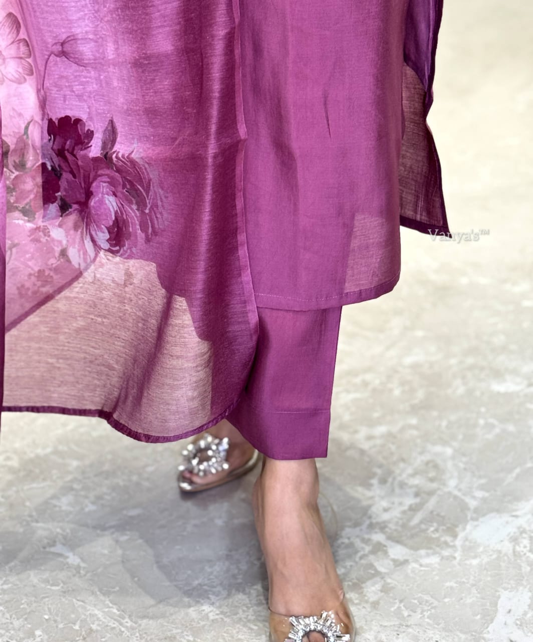with dola silk pant length 38″. Paired with pure digital print chanderi silk dupatta