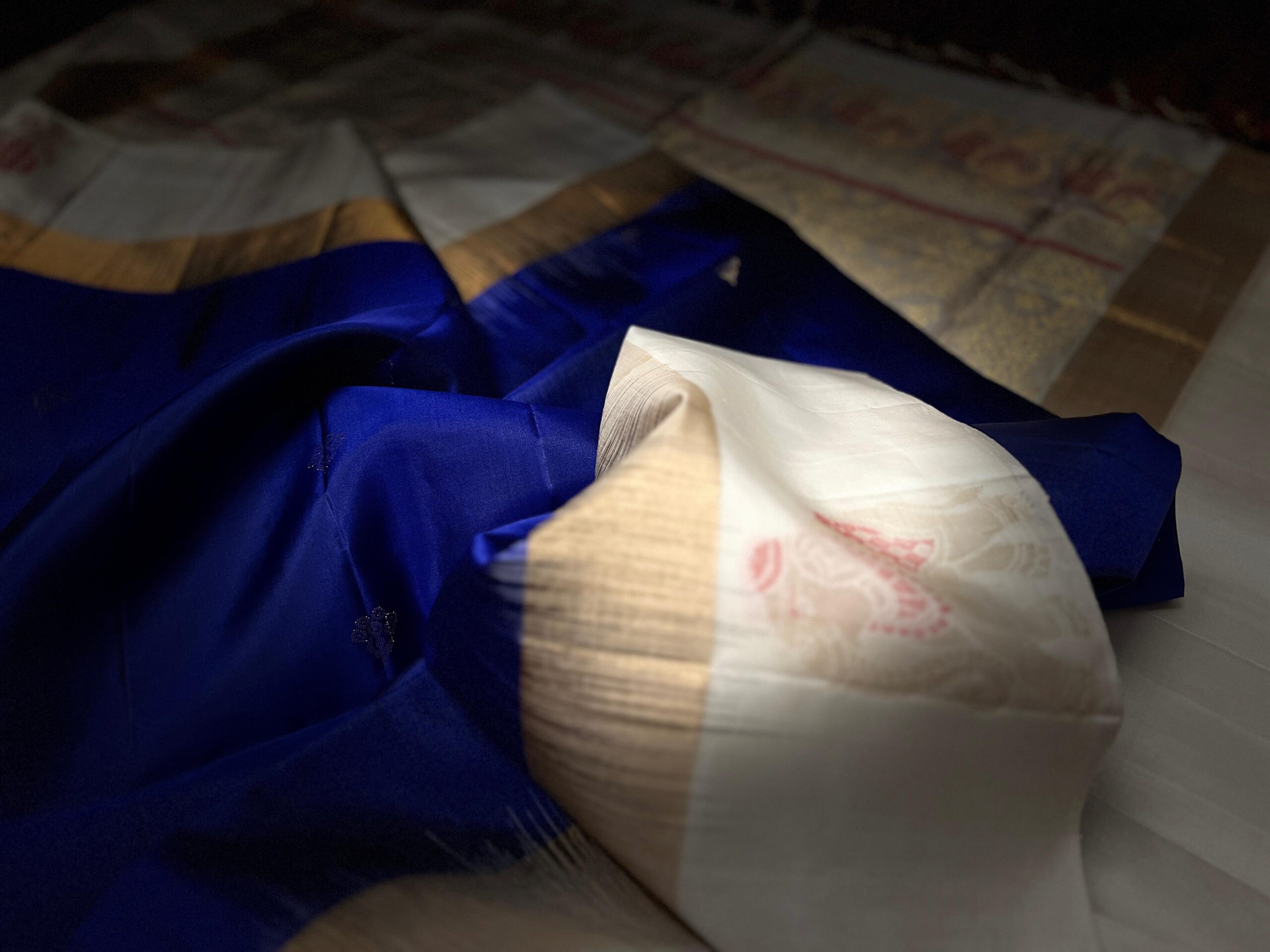 Always dry-clean pure silk saris to preserve the fabric’s sheen and colour. Avoid Washing at Home: Never machine wash; water and detergents can damage silk fibres. Store in a Cool, Dry Place: Keep saris away from direct sunlight and moisture. Wrap each sari in a soft cotton or muslin cloth before storing to allow it to breathe. Refold the sari every 3–4 months to prevent permanent creases and tearing along folds. Instead, use neem leaves or silica gel packets to prevent insects and moisture. Use a low-heat setting, or steam-iron the reverse side with a thin cloth on top. Jewellery Care Tips