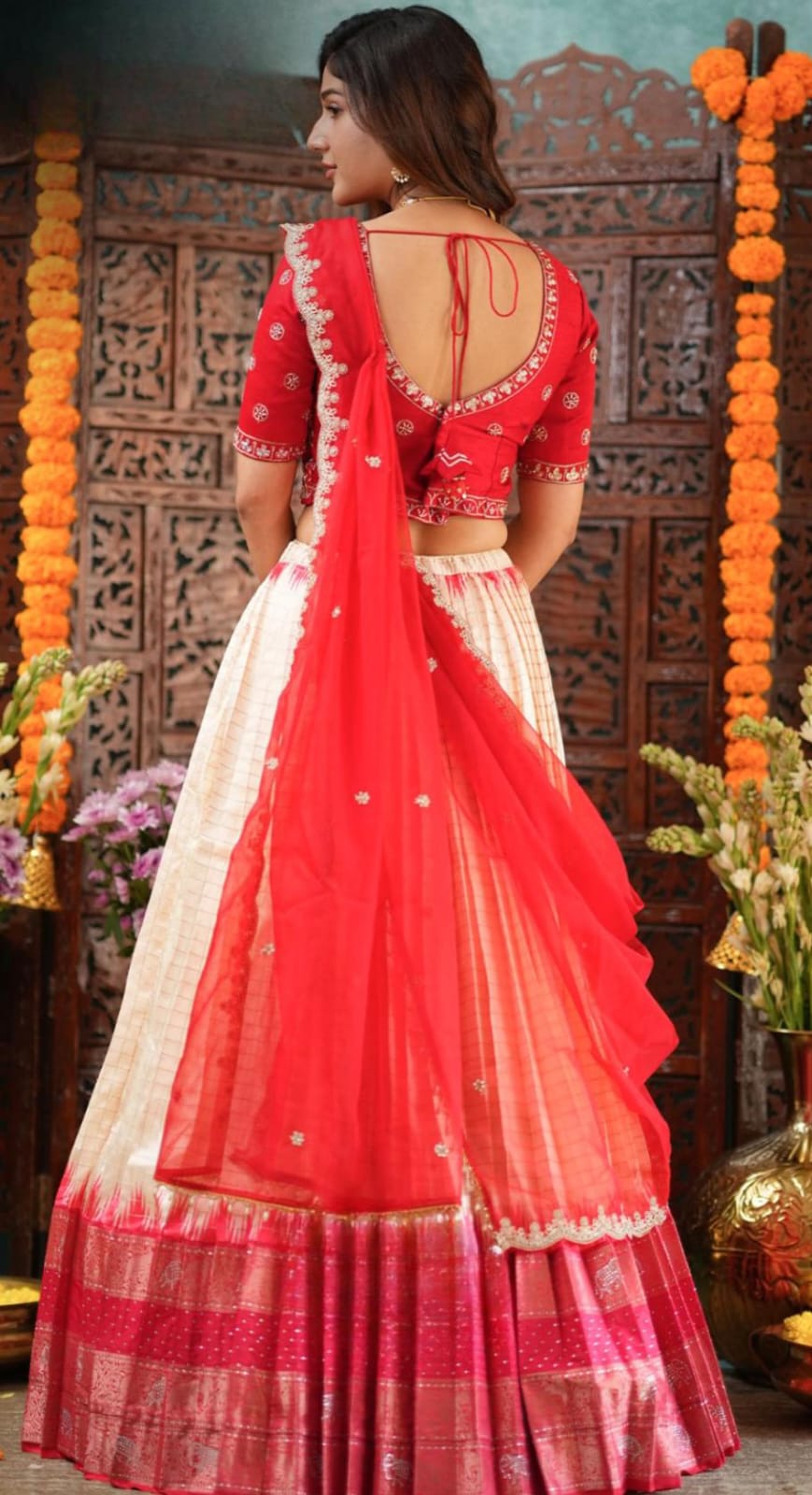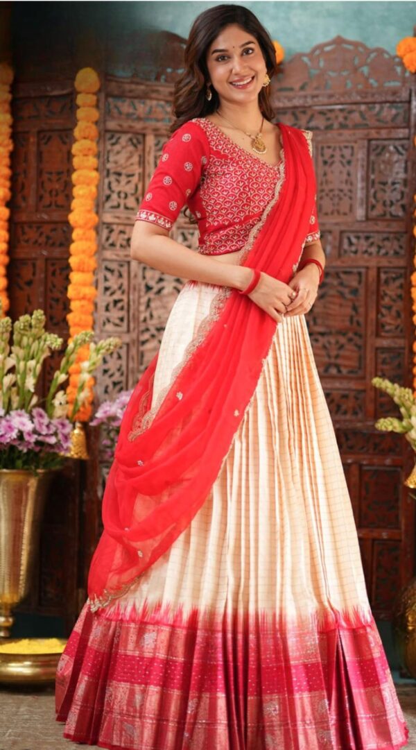 Celebrate in timeless elegance with this exquisite red checks lehenga set, adorned with sparkling Swarovski Lehenga. Perfect for weddings, festivals, and grand occasions, this handcrafted piece radiates luxury and sophistication. The intricate checks pattern combined with shimmering embellishments creates an exclusive, show-stopping look. Designed for those who appreciate Detailed and fine craftsmanship and desire to stand out with refined beauty