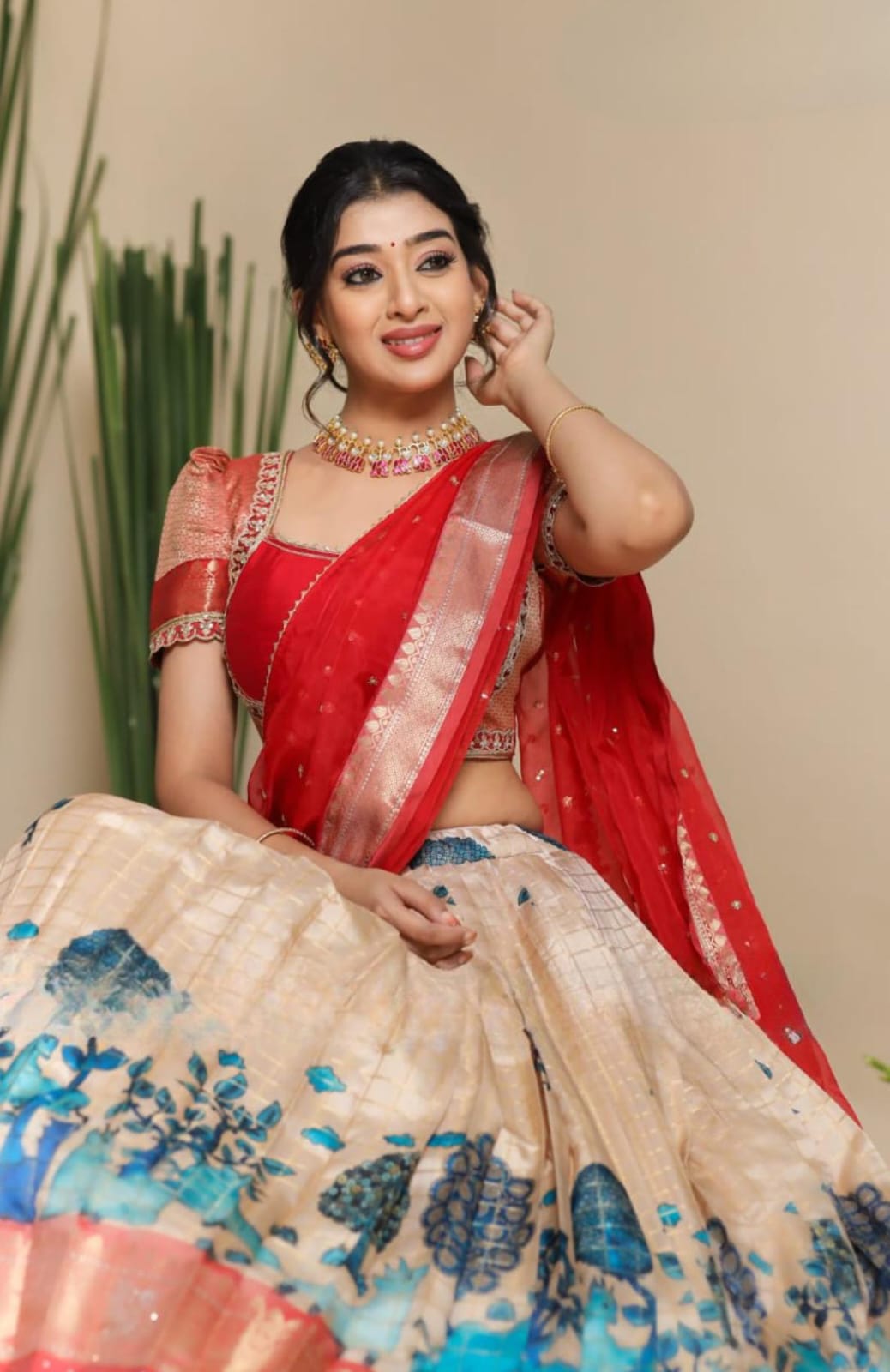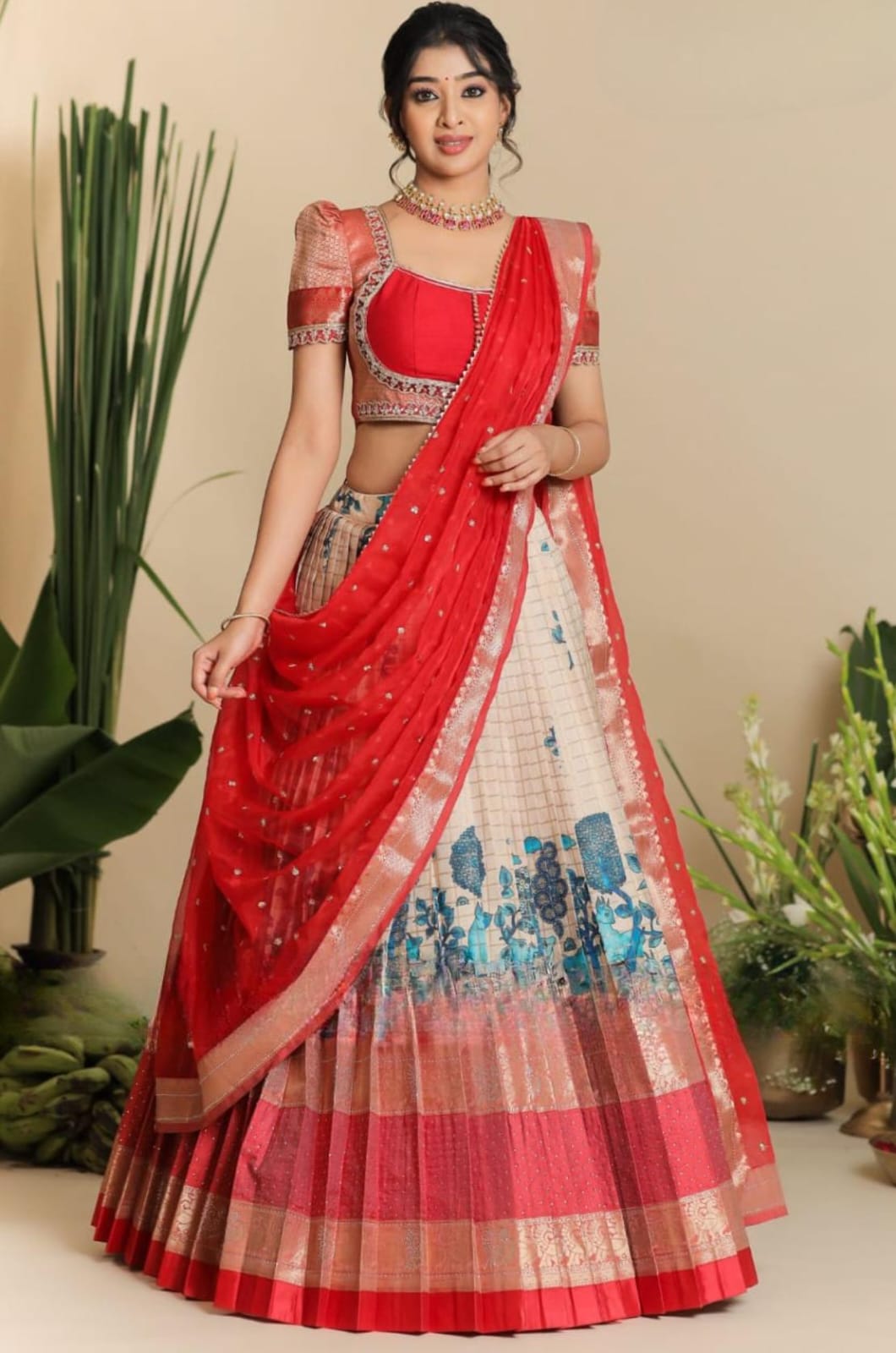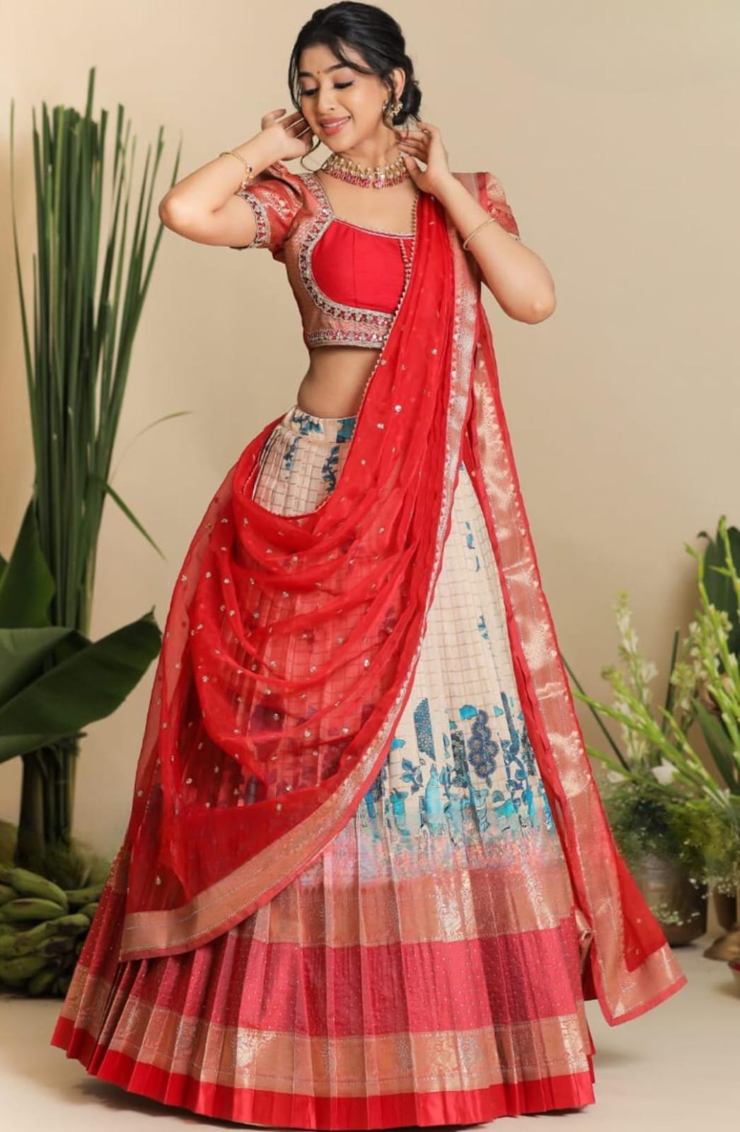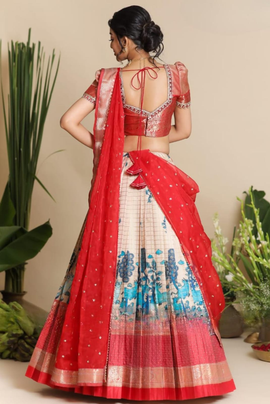 Dress Code: BK797N Fabrice: Banarasi Silk, Organza Color: Red, Ivory *SIZE: S to XXL*