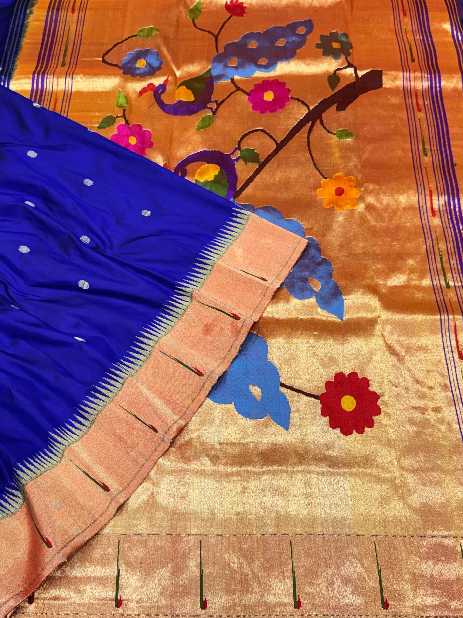 Add this authentic Paithani pure silk saree to your wardrobe and experience the charm of handcrafted luxury.