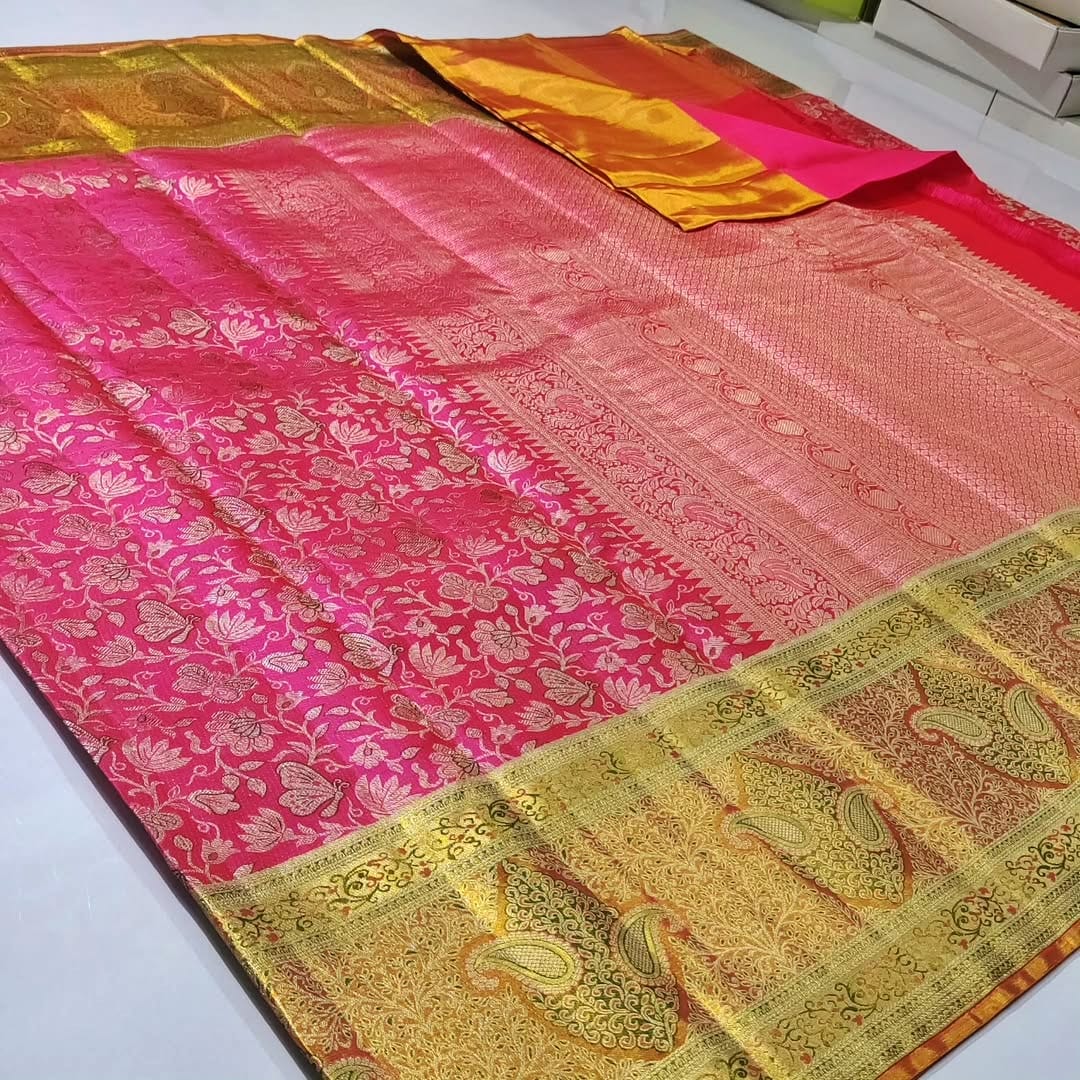Special edition pure kanchipattu resham warp edge to edge Meenakari 1g designs