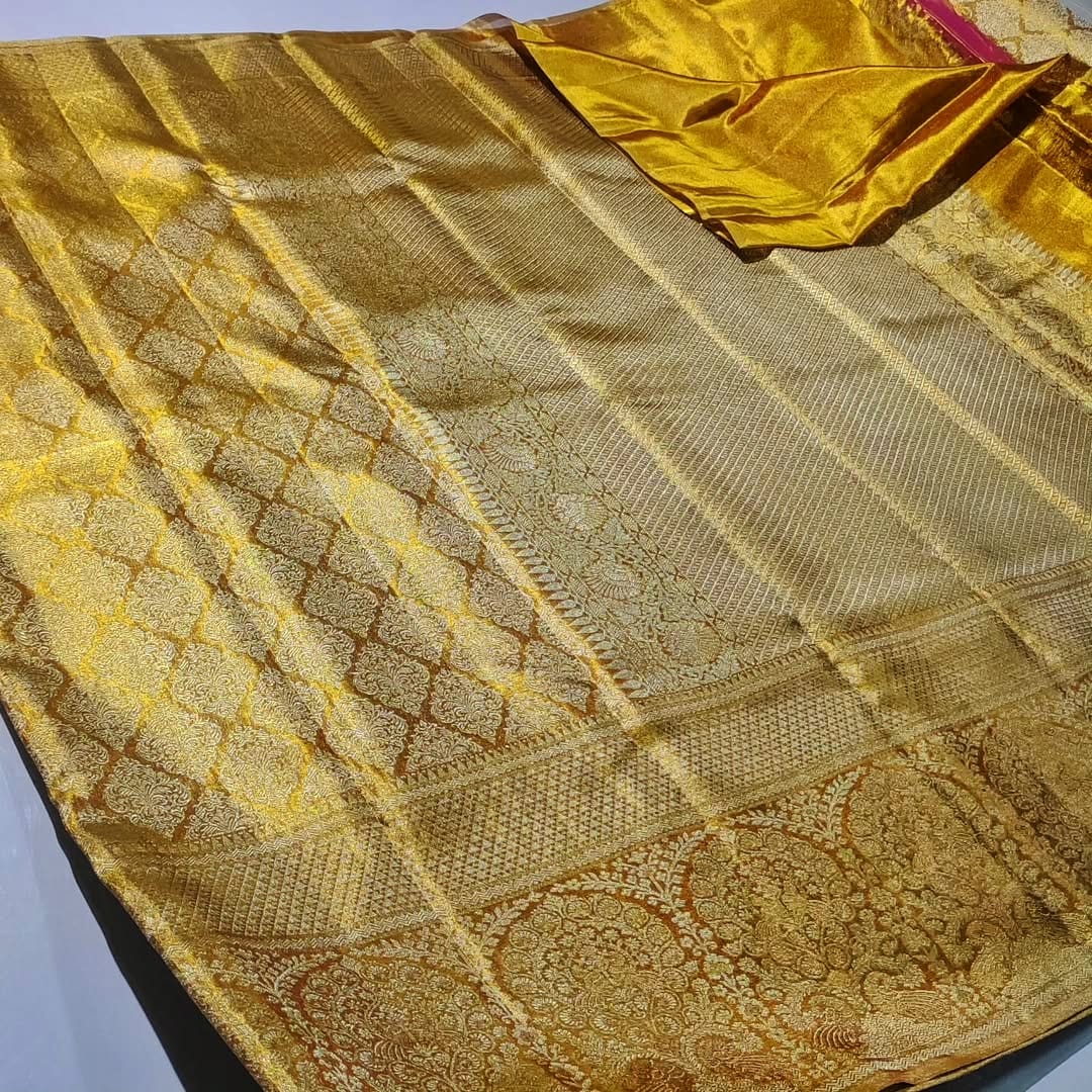 Premium Quality Tissue Bridal Silk Saree. Very Latest Design Indian Bridal Saree