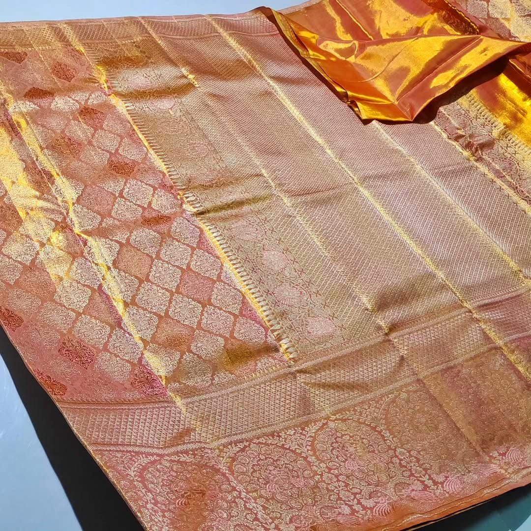 Special edition pure kanchipattu tissue edge to edge meena work designs