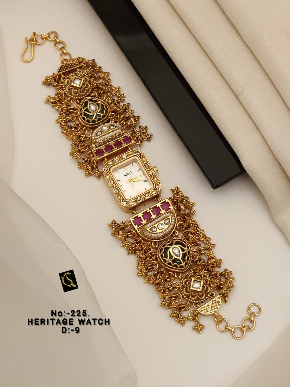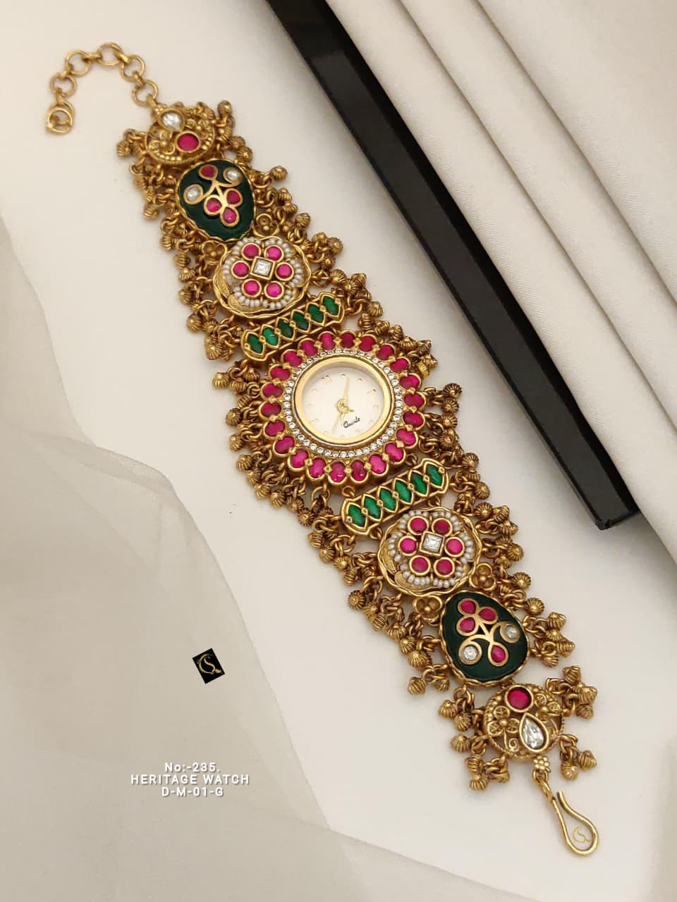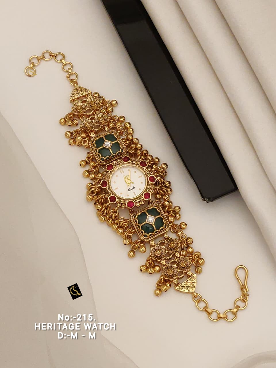 Elevate your festive and wedding look with this Antique Heritage Golden Watch, designed to reflect timeless tradition and royal elegance. Crafted with a rich gold finish and classic detailing, this watch adds a luxurious touch to ethnic and ceremonial outfits. Perfect for weddings, festivals, and special occasions, it embodies heritage charm with a refined, majestic presence.