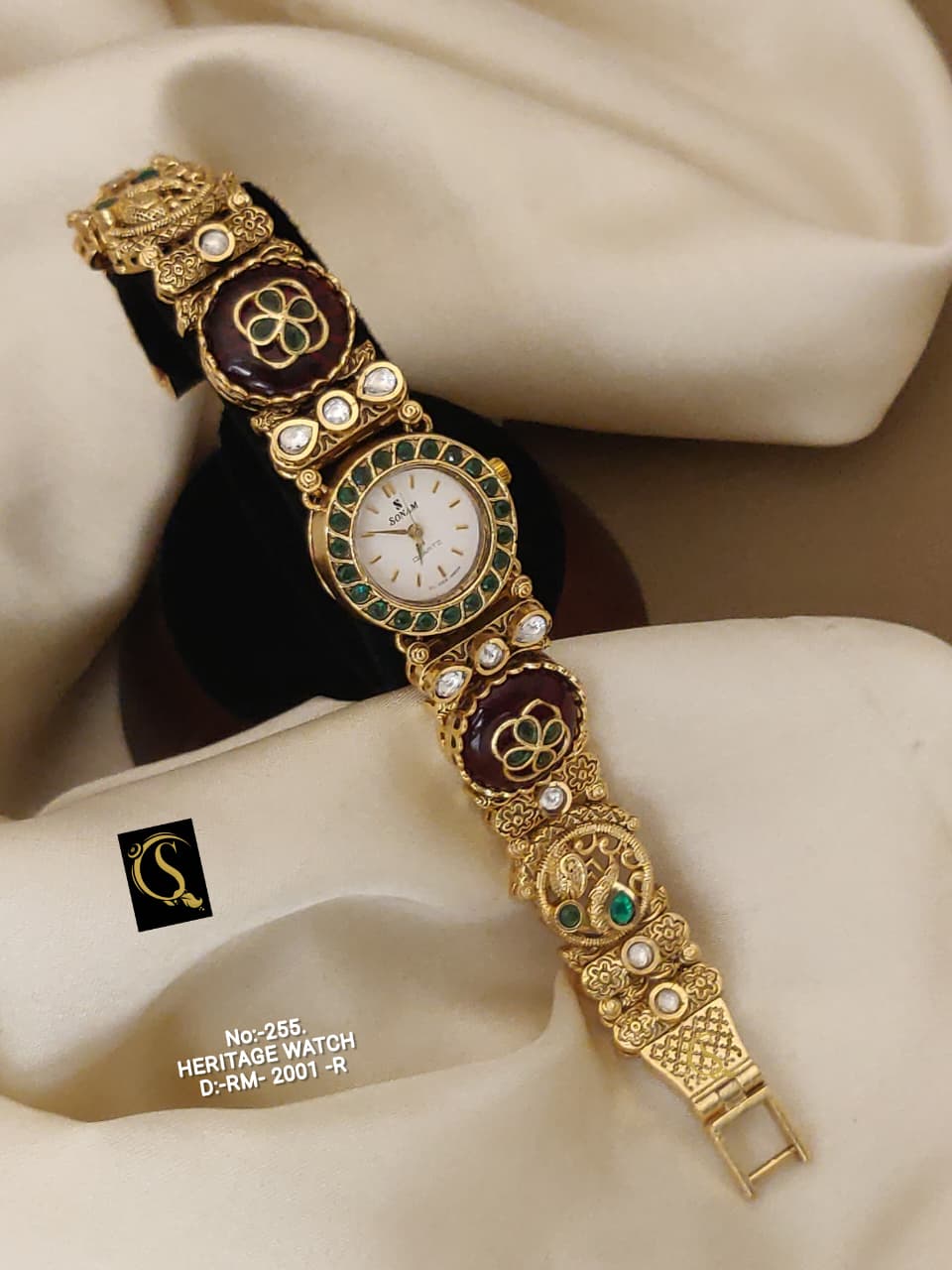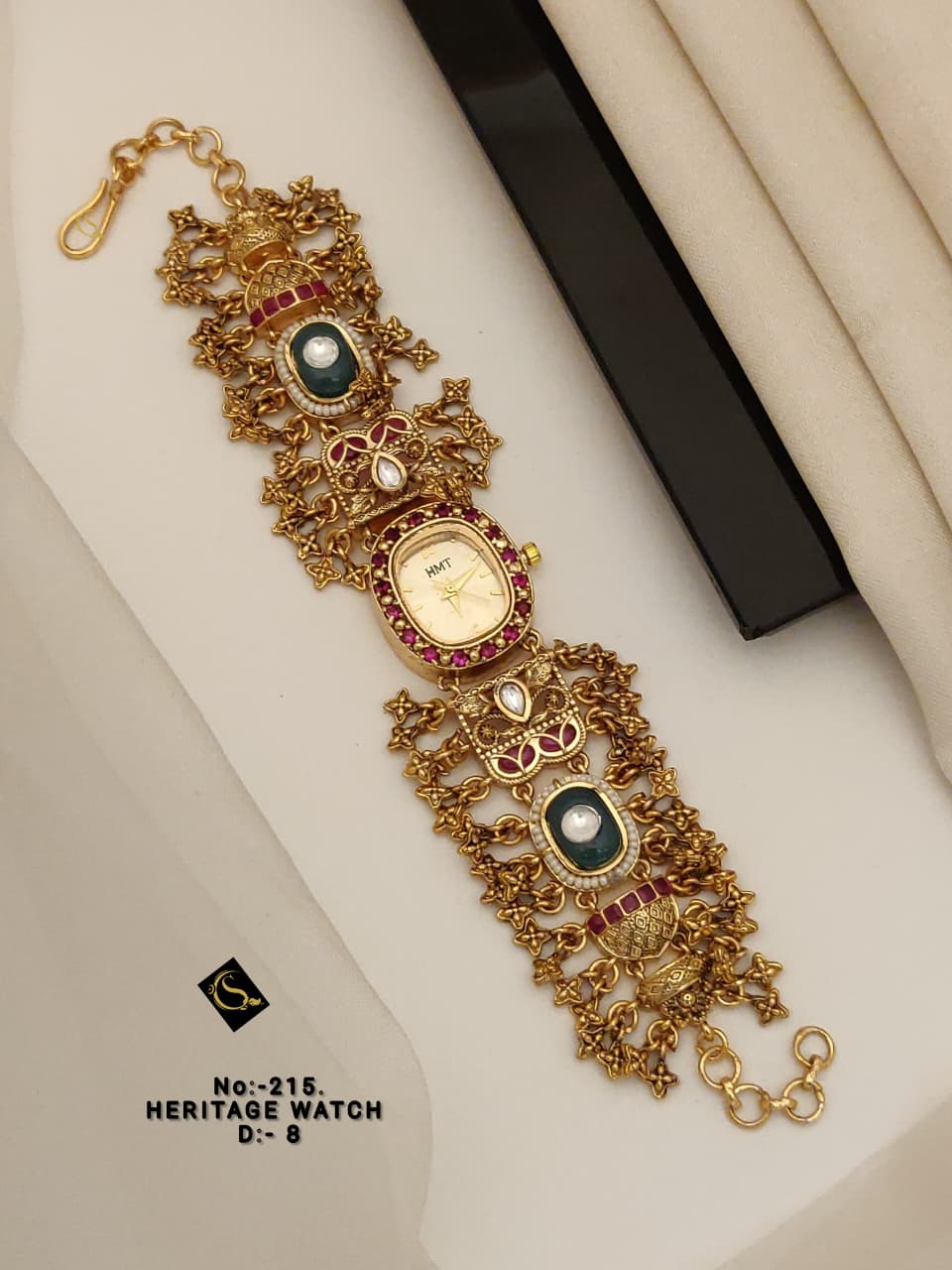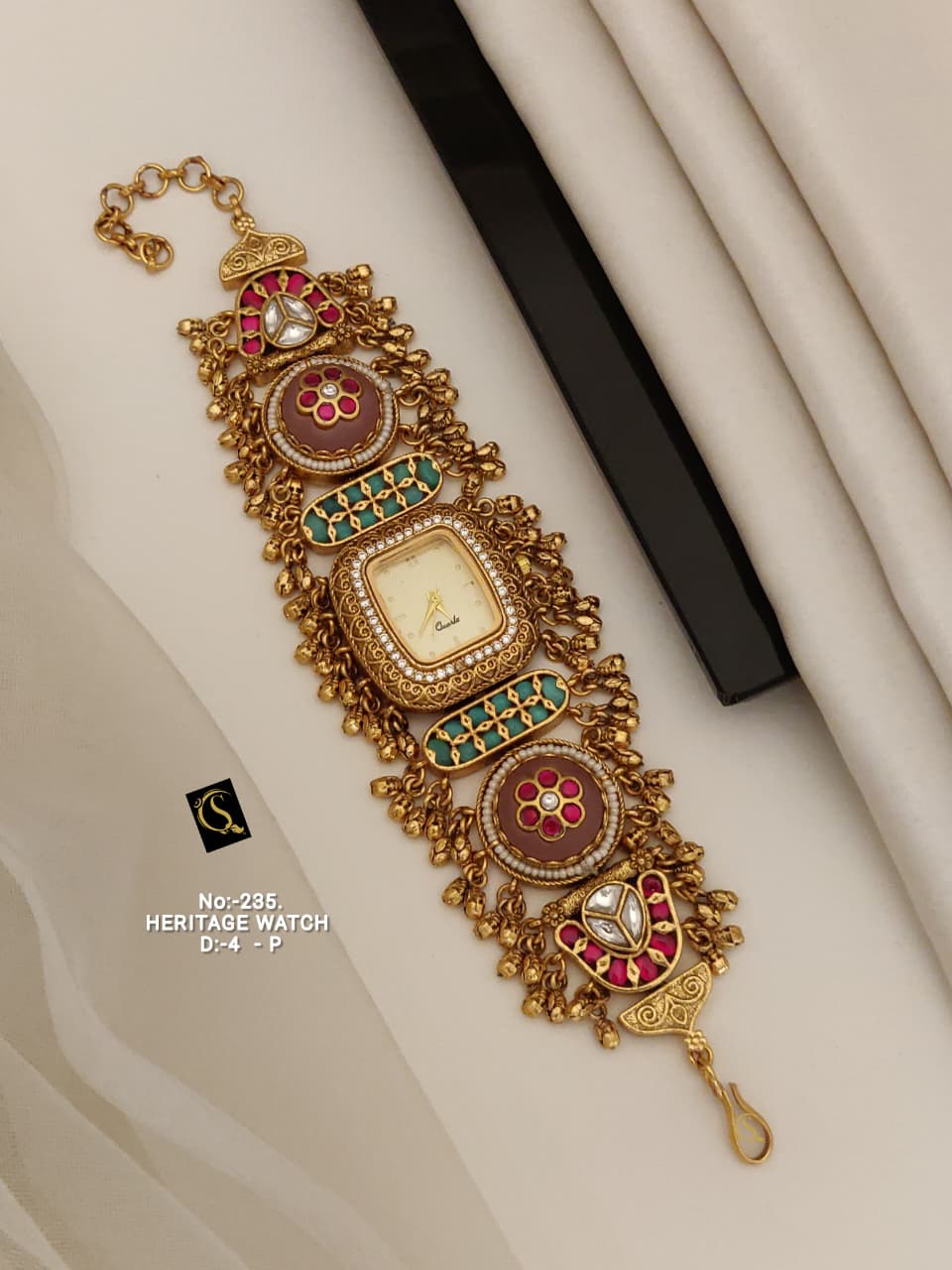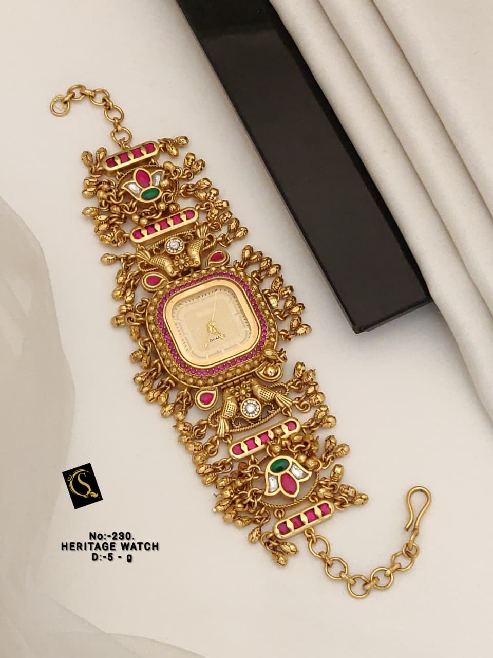 Elevate your festive and wedding look with this Antique Heritage Golden Watch, designed to reflect timeless tradition and royal elegance. Crafted with a rich gold finish and classic detailing, this watch adds a luxurious touch to ethnic and ceremonial outfits. Perfect for weddings, festivals, and special occasions, it embodies heritage charm with a refined, majestic presence.