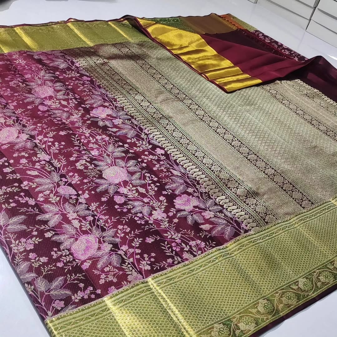 Premium Quality Tissue Bridal Silk Saree. Very Latest Design Indian Bridal Saree