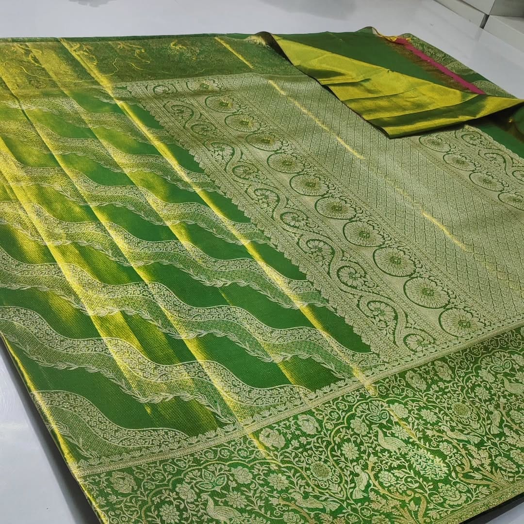 Premium Quality Tissue Bridal Silk Saree. Very Latest Design Indian Bridal Saree