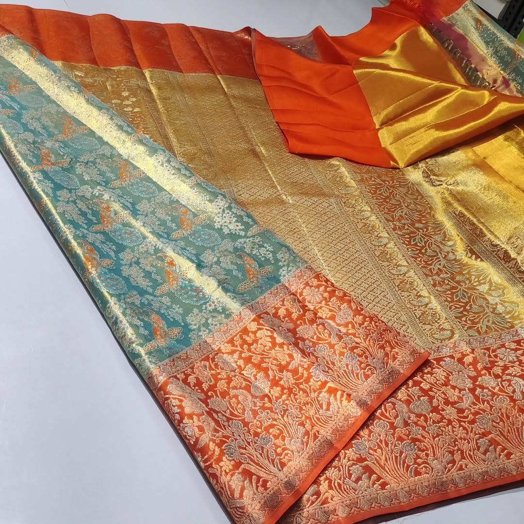 Premium Quality Tissue Bridal Silk Saree. Very Latest Design Indian Bridal Saree