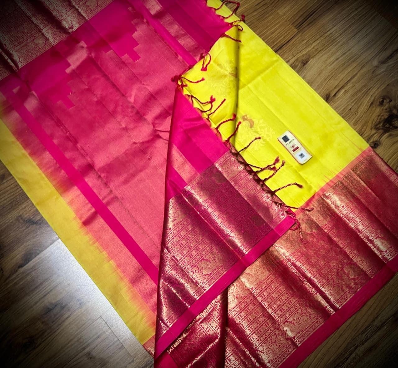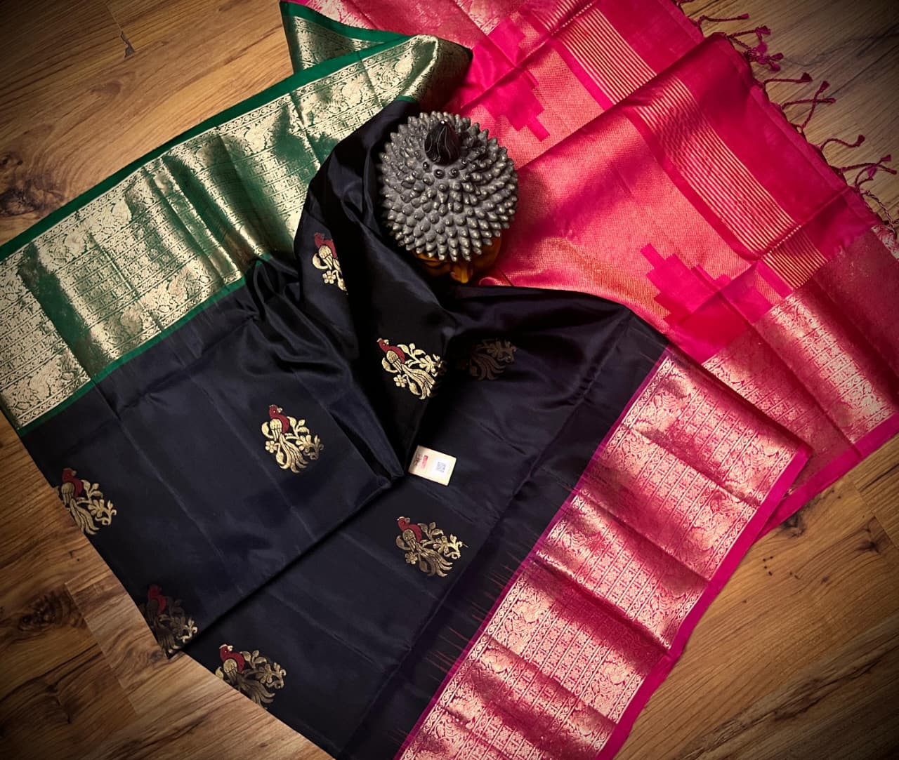 Customisation of colour possible minimum of 2 sarees Any colour can be made Both border colour, body and anything, any combo can be made… This saree is made of contrast Loom..