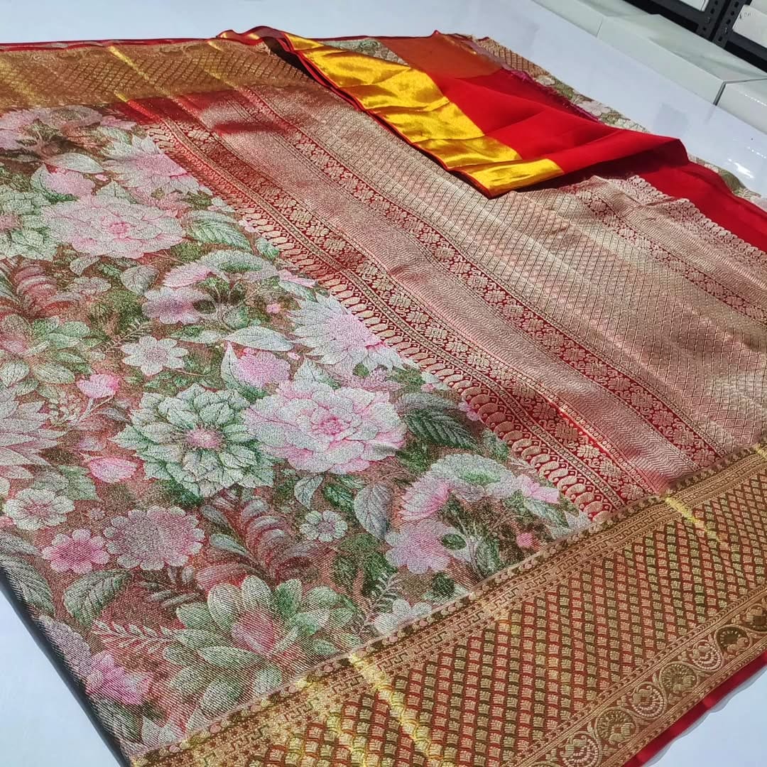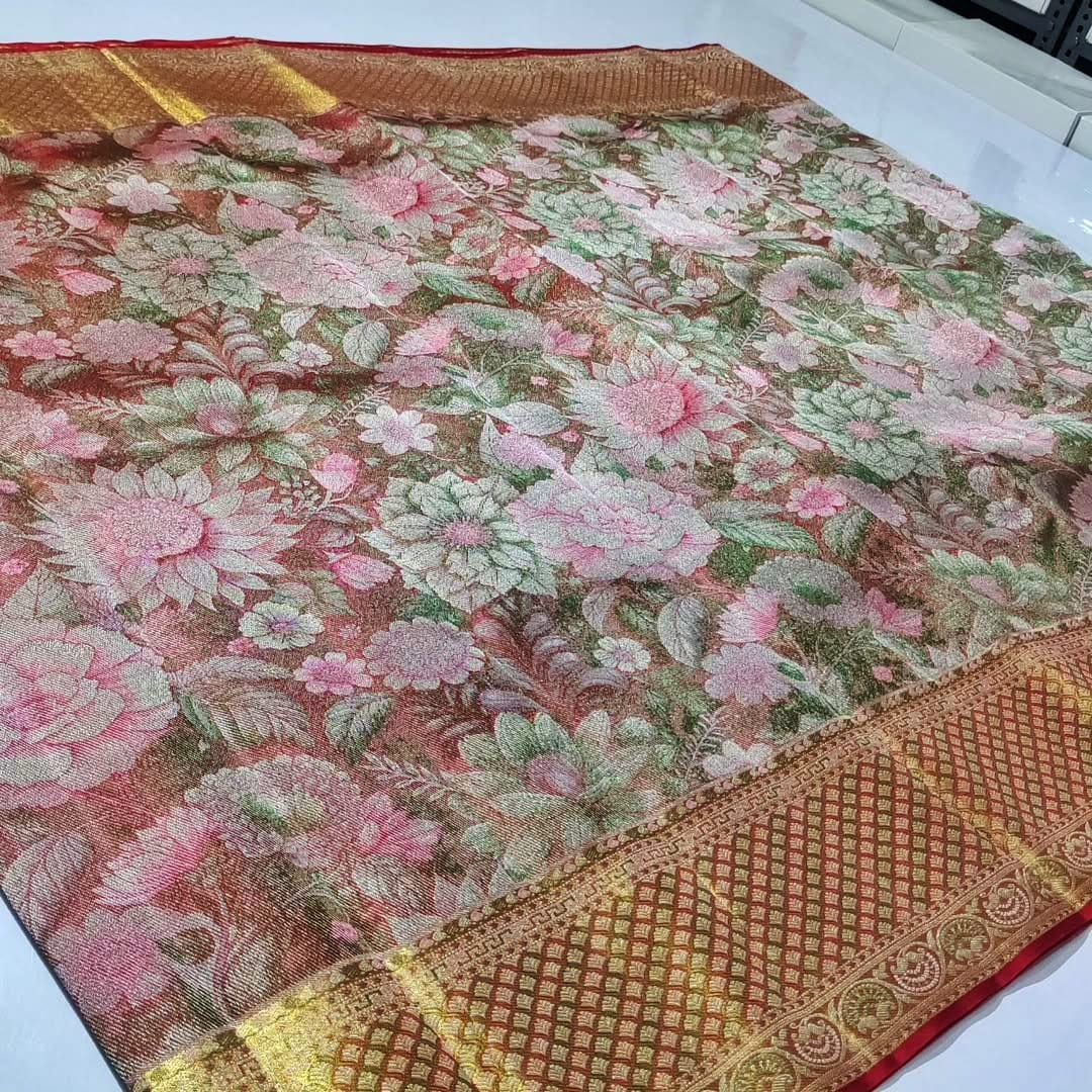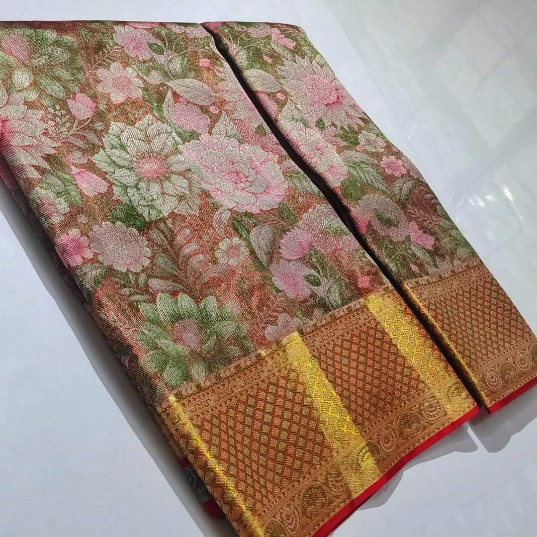 Unlike regular silk sarees, tissue silk sarees offer a luxurious metallic finish that enhances your presence instantly. Whether you’re the bride, sister of the bride, or attending a grand function, this saree ensures all eyes are on you.
