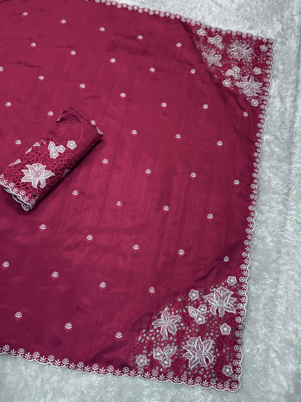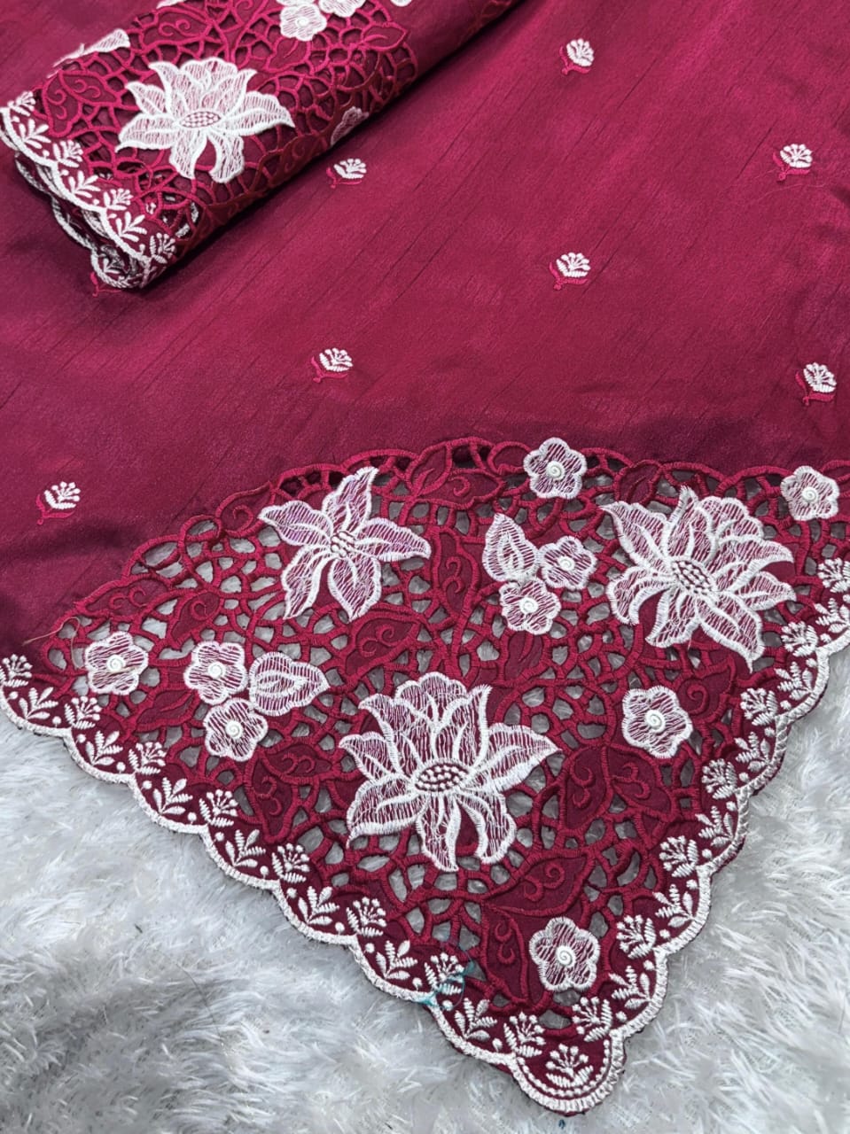 *1- Thread Embroidery work in saree with cutwork*
