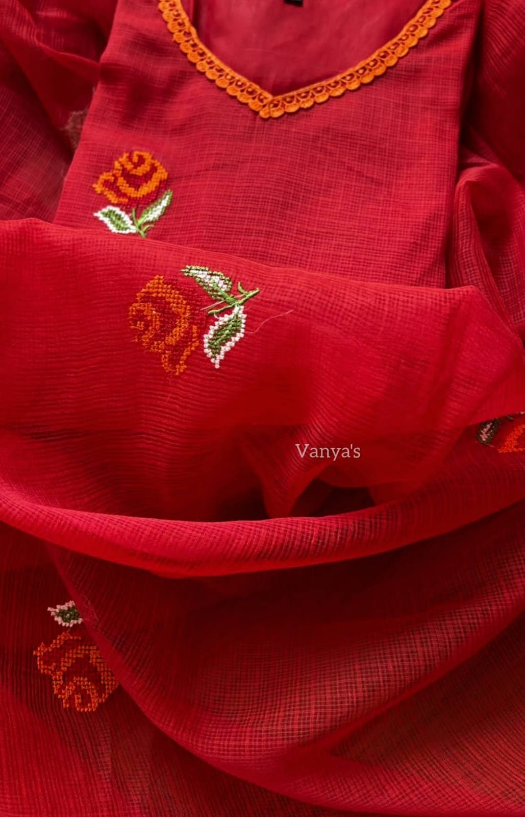 *Heavy cross stitch thread embroidery 🪡 work over kurta and duppata*