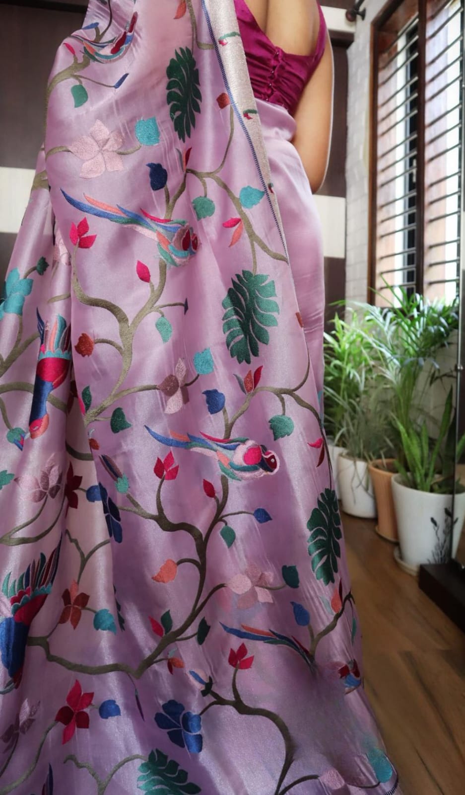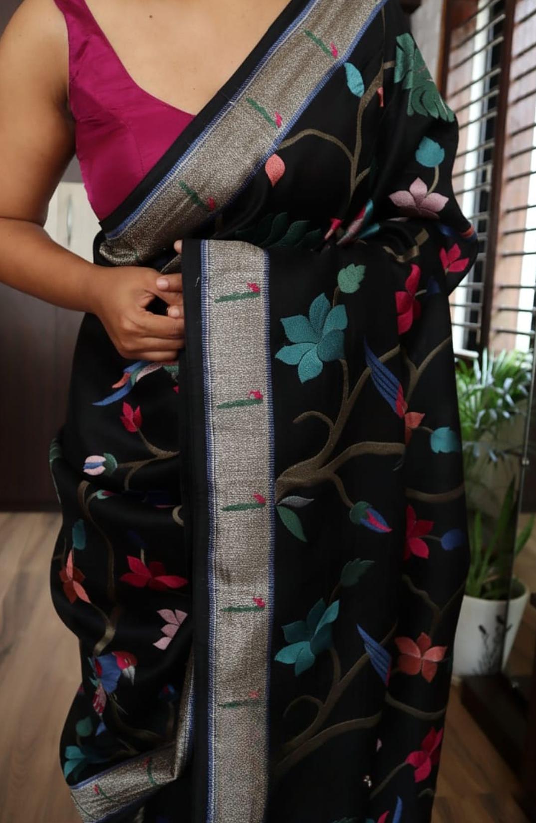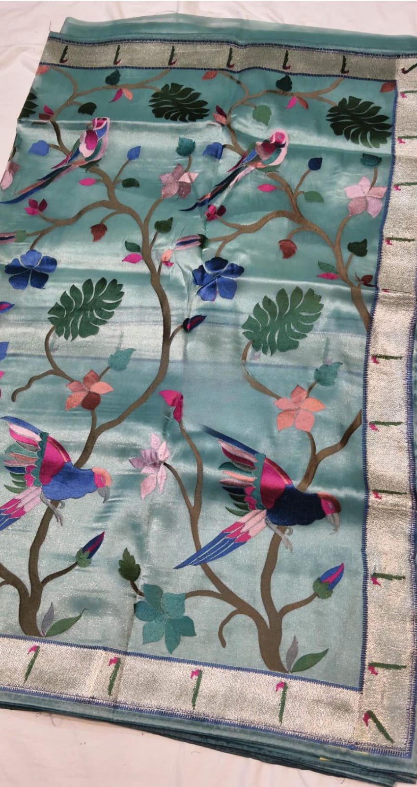 Be the first to review “Pure tissue banarasi silk saree with paithani embroidery”