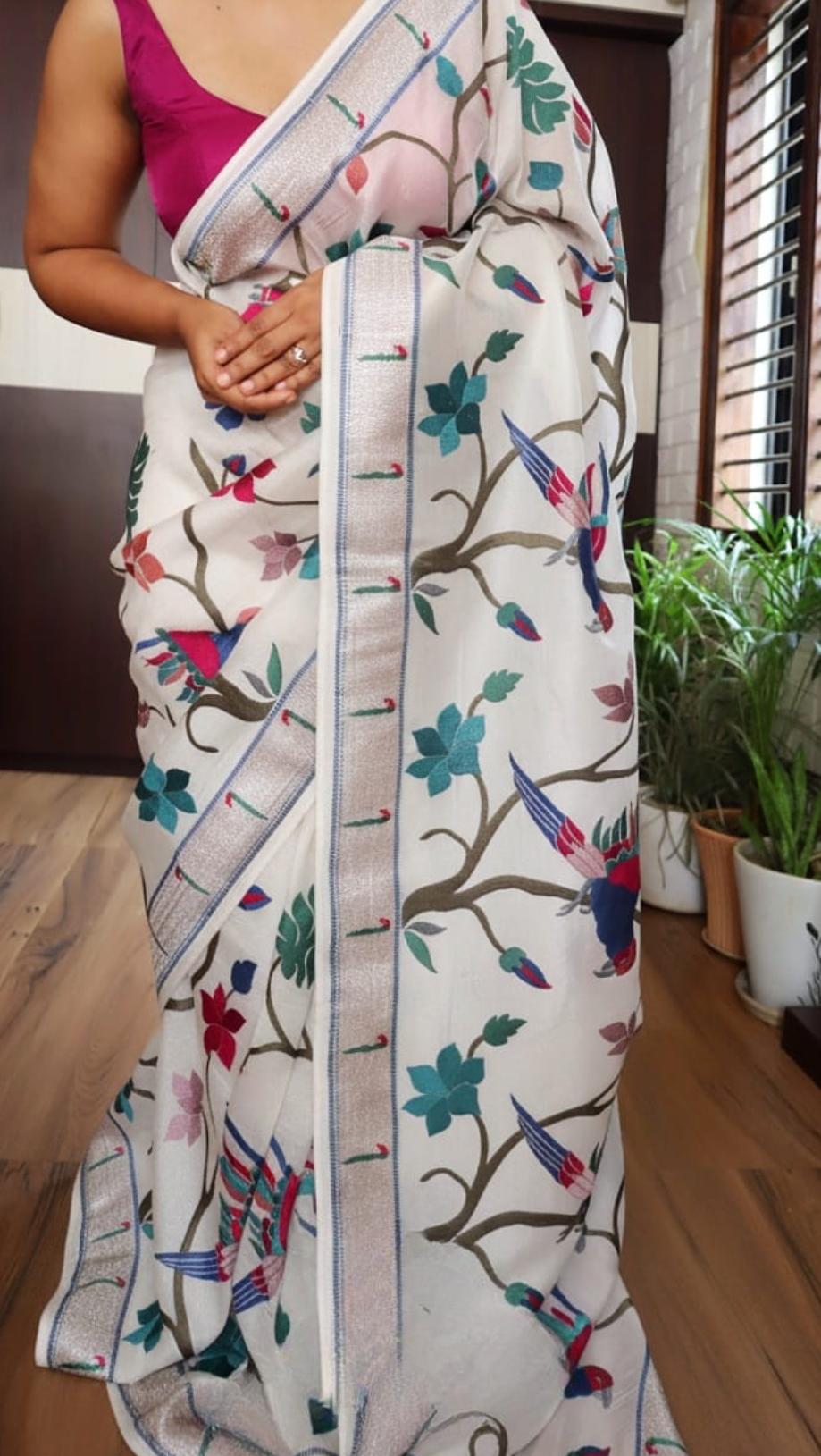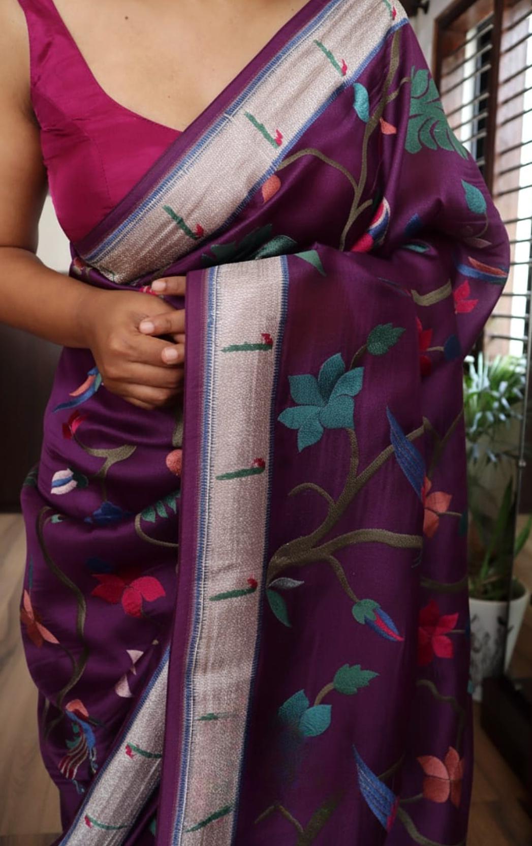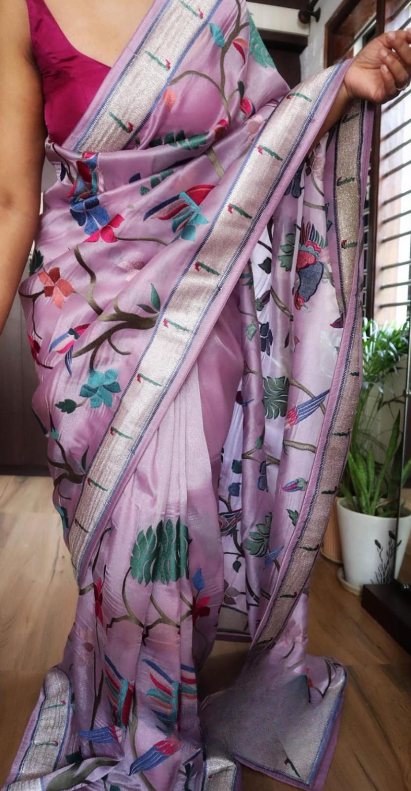 Be the first to review “Pure tissue banarasi silk saree with paithani embroidery”
