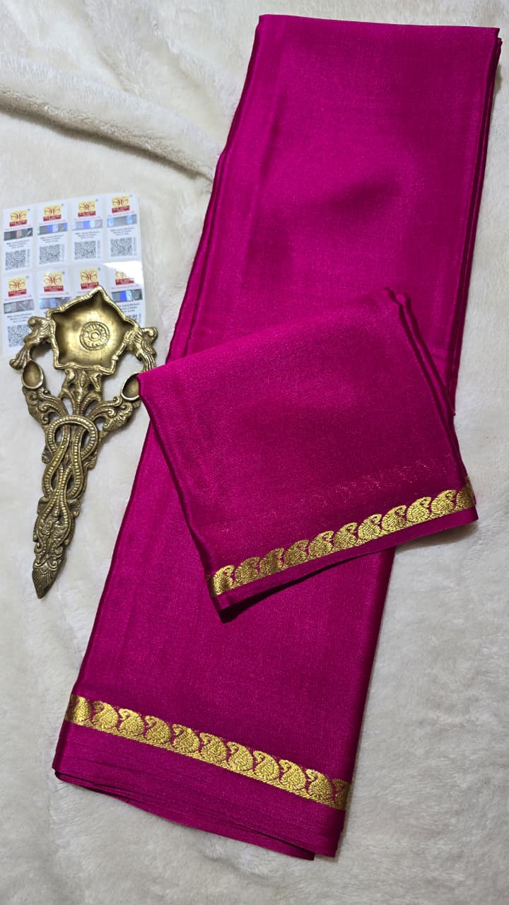 Step into timeless tradition with our Mysore Pure Crepe Silk Saree, a masterpiece that blends heritage craftsmanship with modern elegance. Woven from authentic pure silk, this saree features a soft crepe texture that flows beautifully and enhances your natural grace.