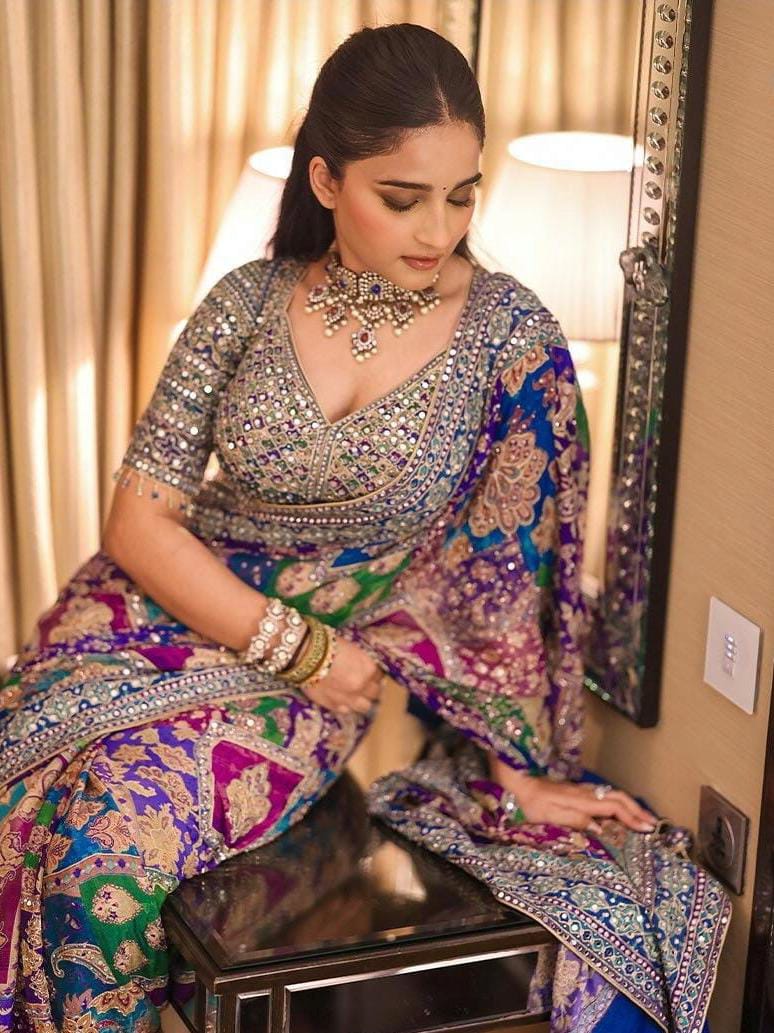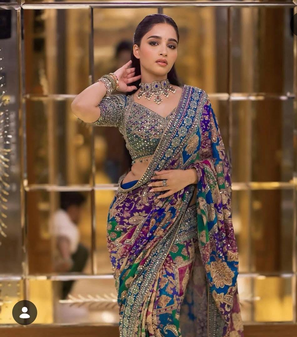 “Get ready to shine in this gorgeous Pure Georgette Saree! ๐ Vibrant floral prints meet stunning zardosi, sequins, cutdana, beads, and mirror work for a festive glow.