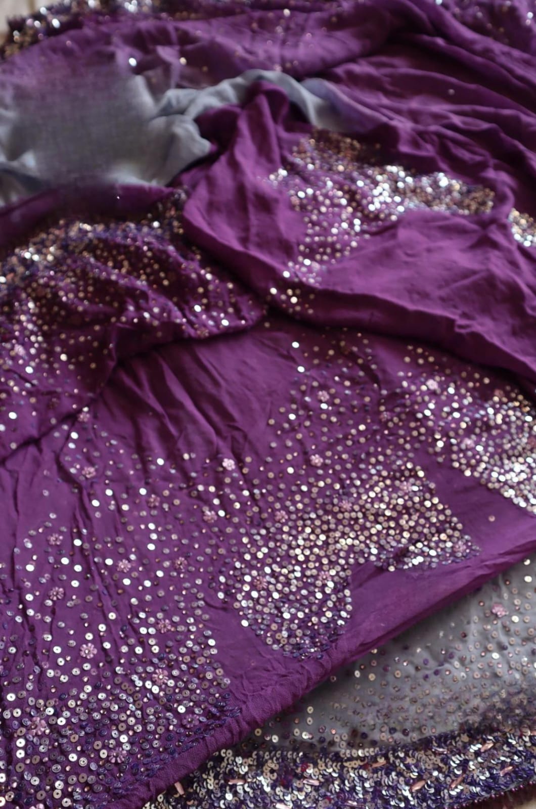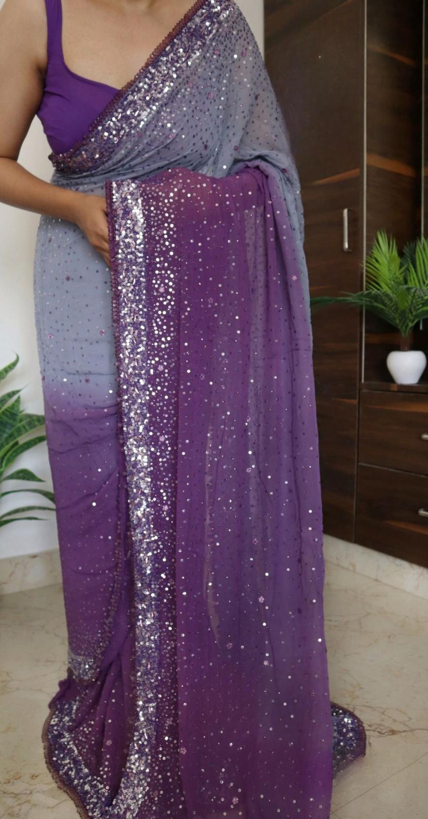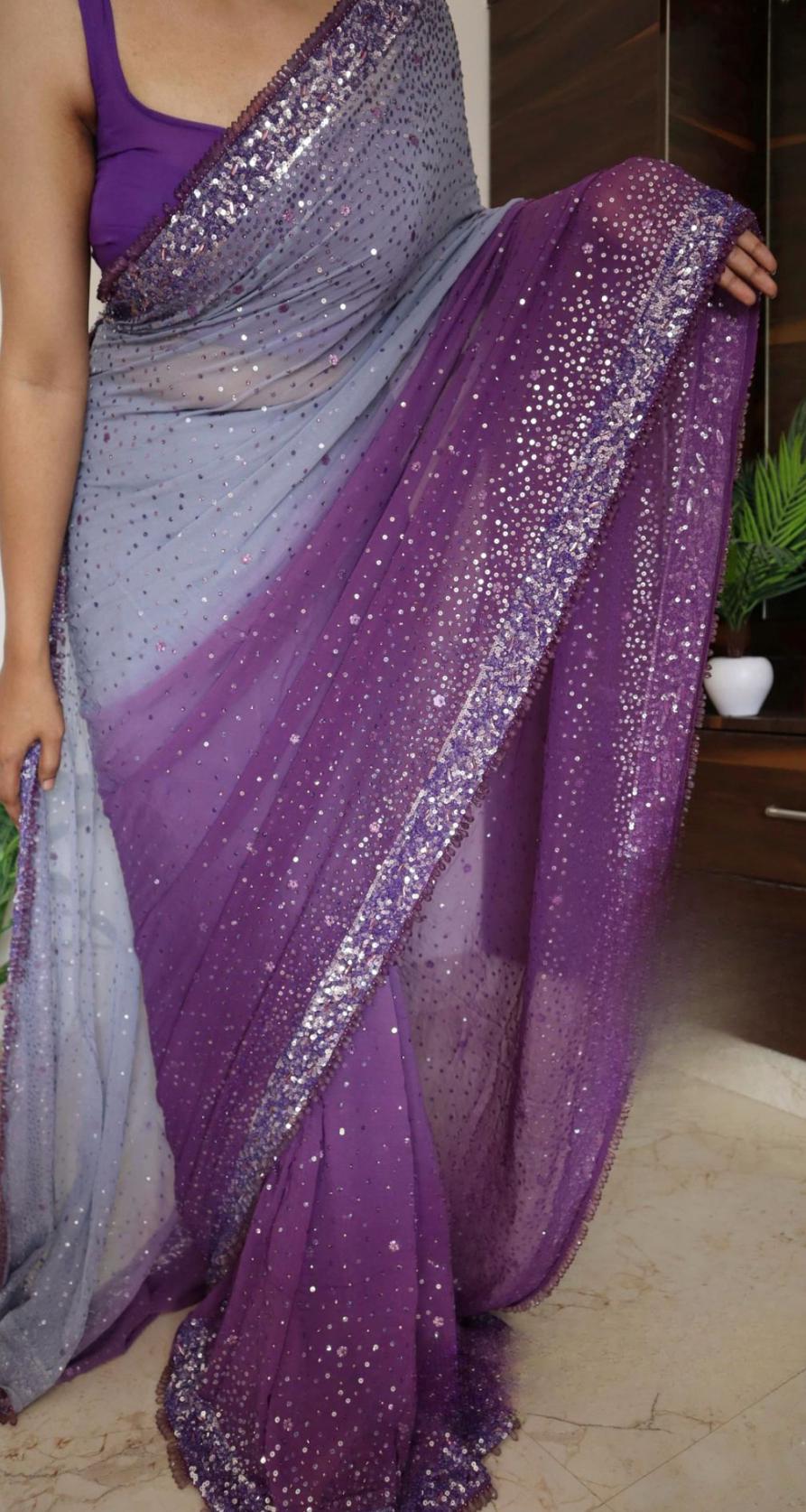 *Our exquisite chiffon georgette silk saree adorned with shimmering sequins, delicate beads, and dazzling stone handwork*
