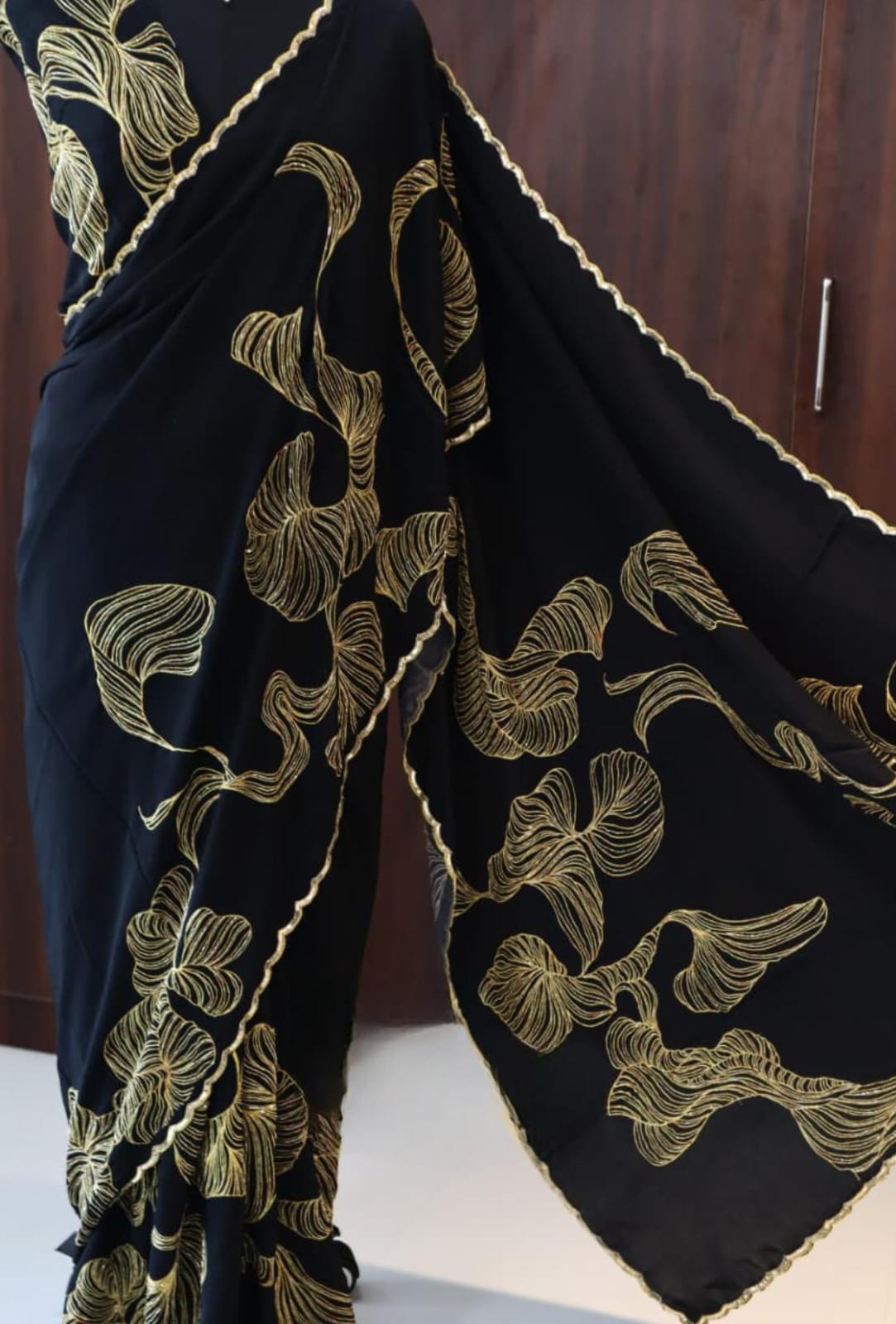 *Where art meets luxury! Pure Crepe silk saree with intricate cutdana handwork & sequin borders..*