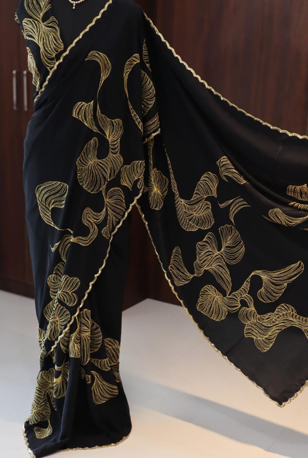 Pure Crepe silk saree with intricate cutdana handwork