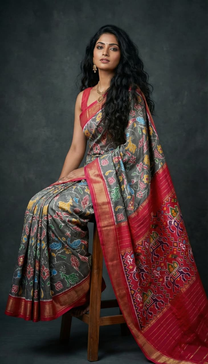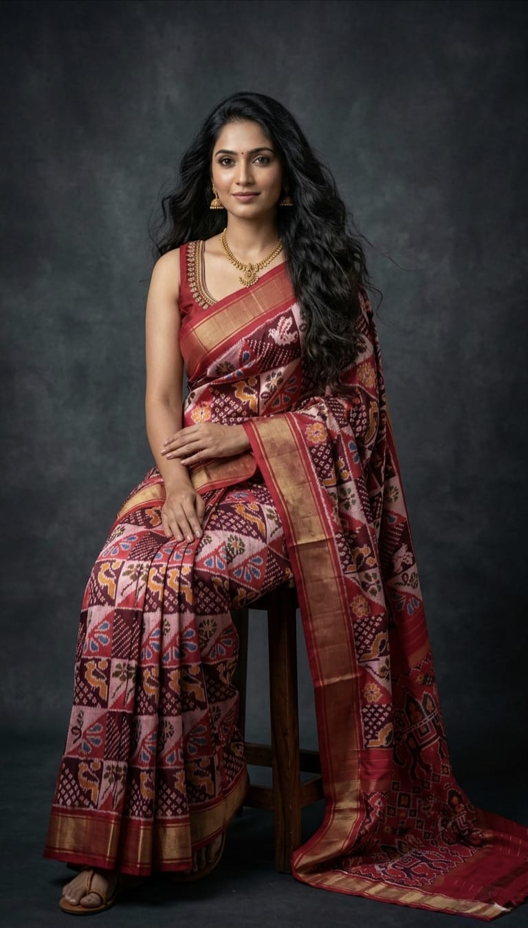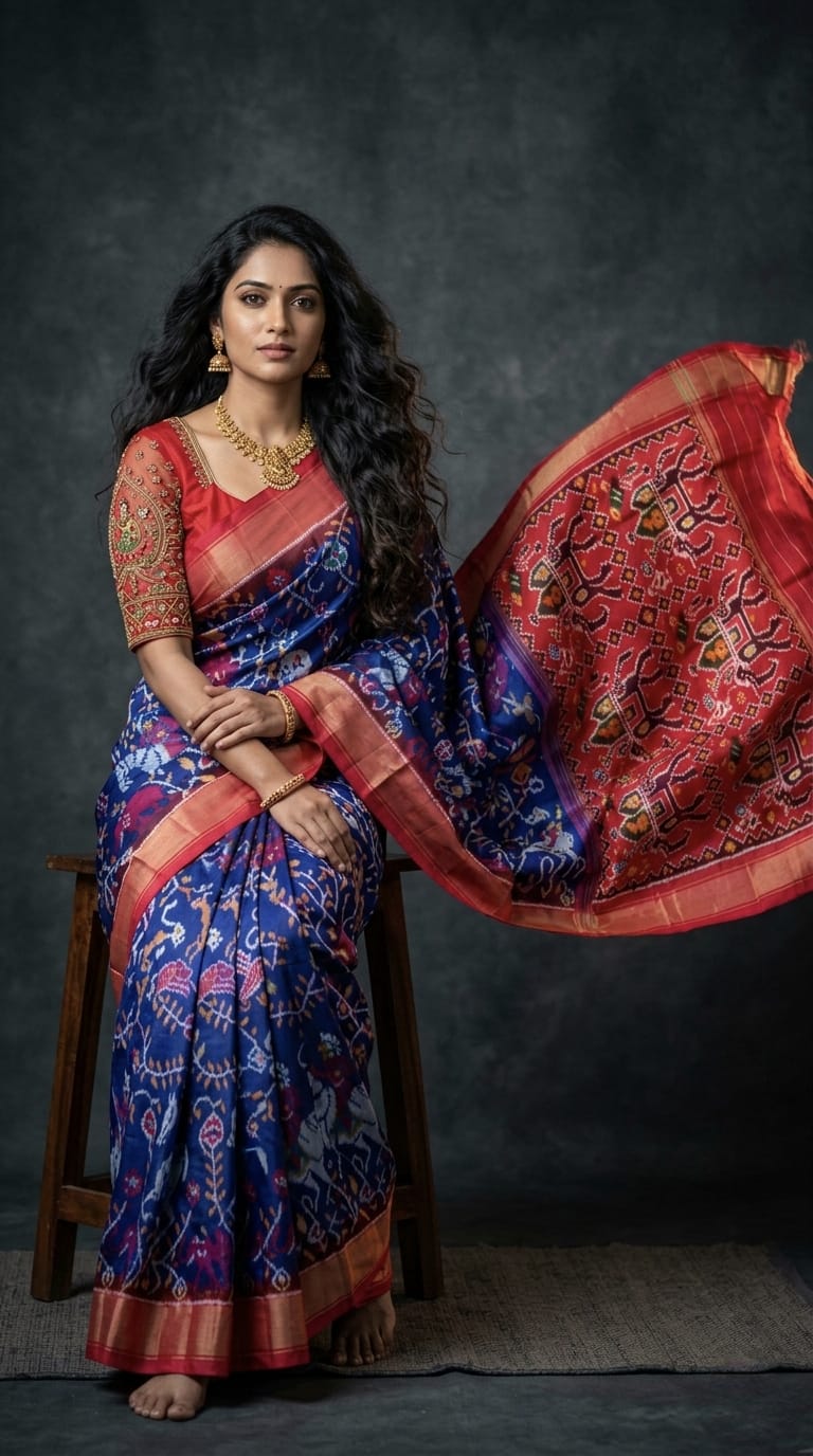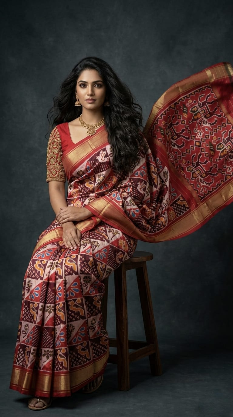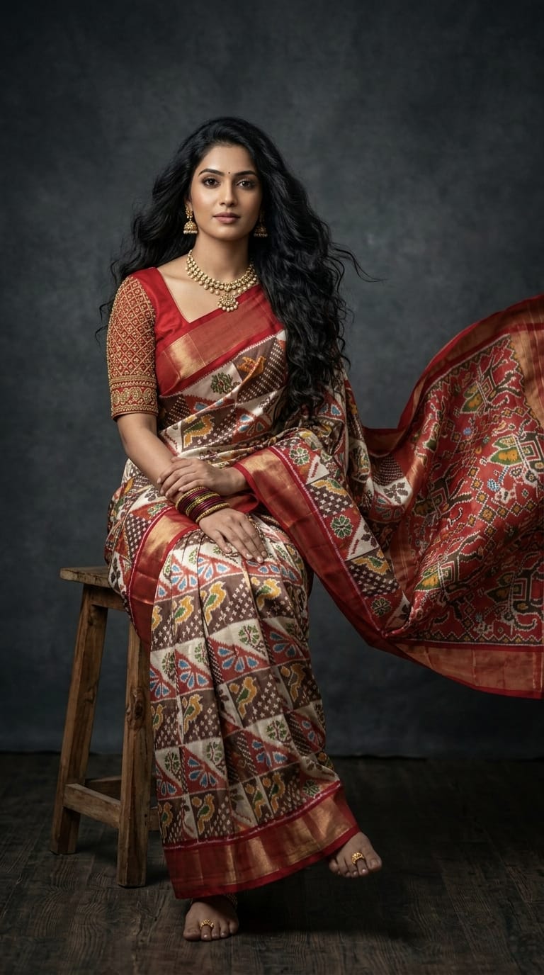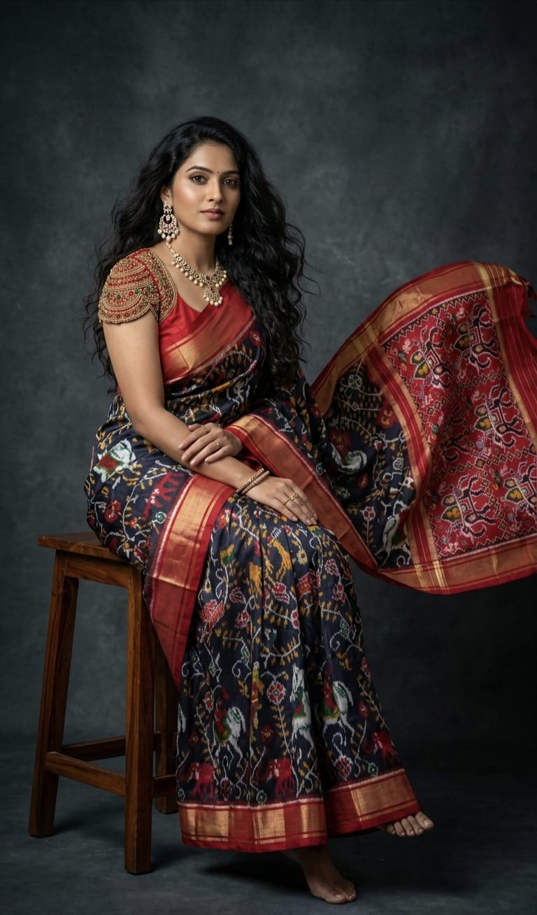 The Pochampally Pure Silk Saree is a symbol of South Indian weaving excellence. Originating from Bhoodan Pochampally, these sarees are famous for their intricate Ikat dyeing technique, where the yarns are tie-dyed before weaving to create stunning geometric and traditional patterns.