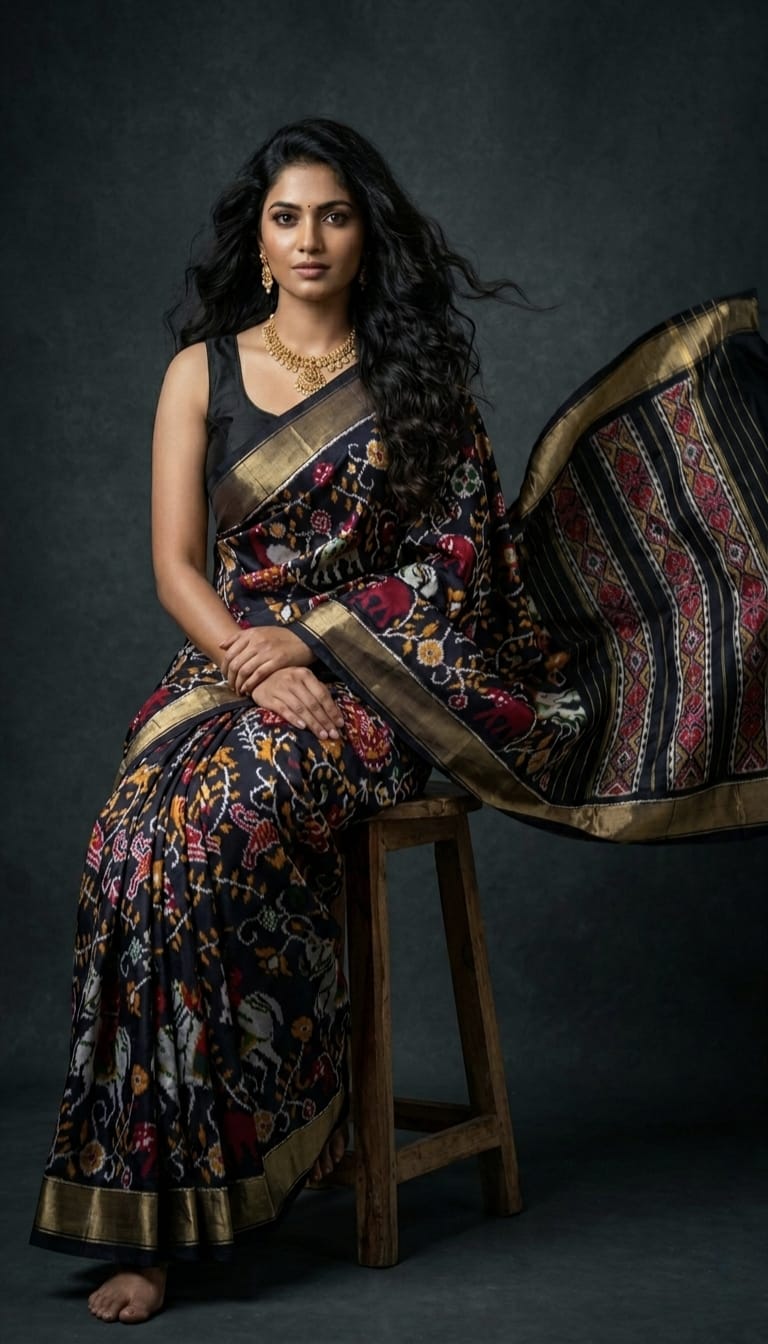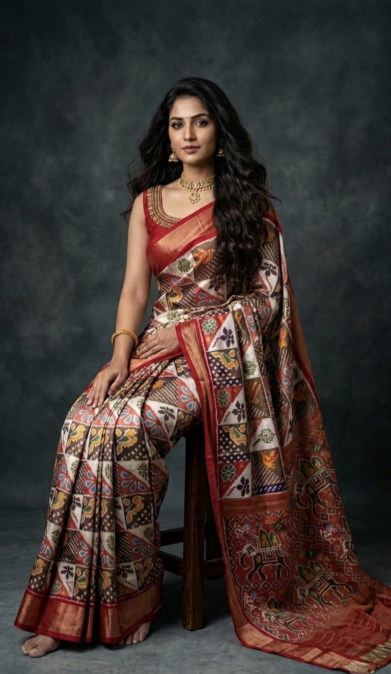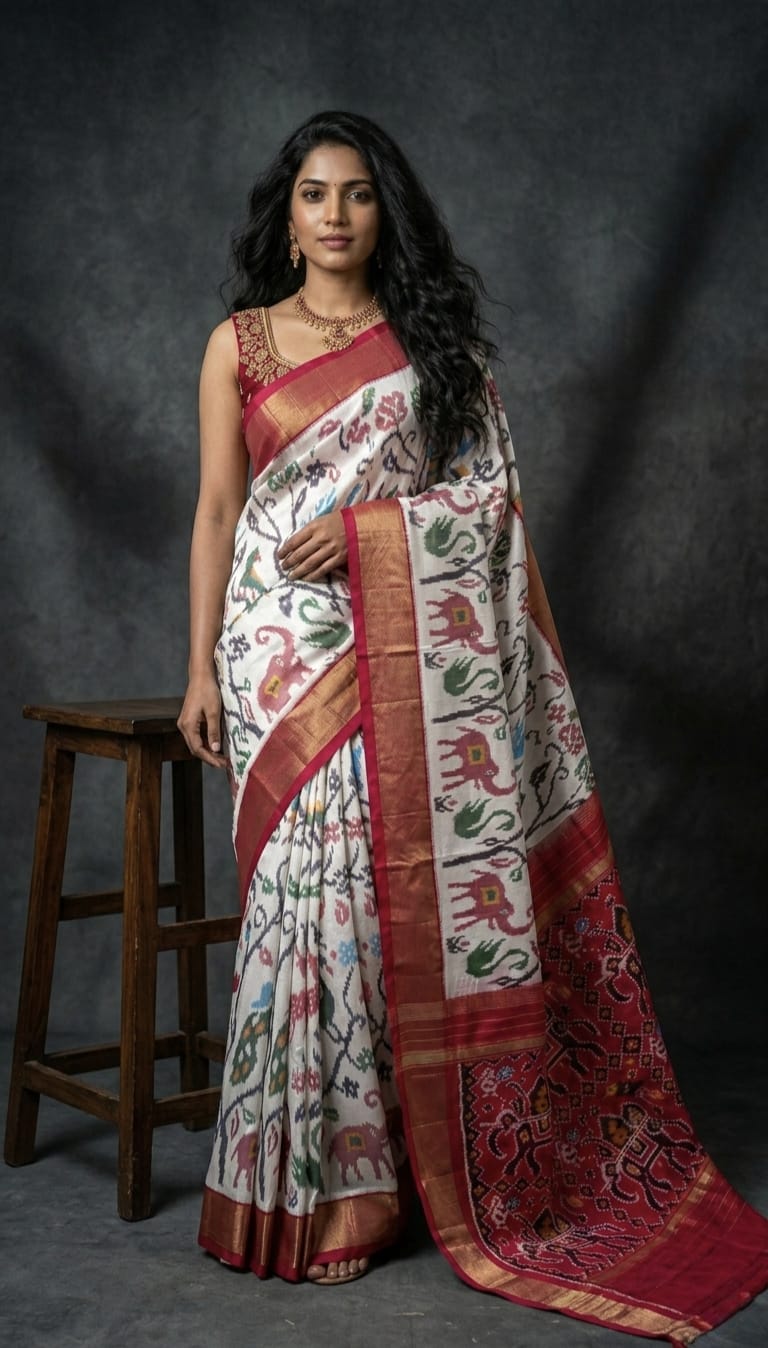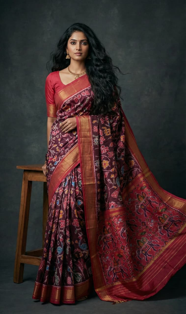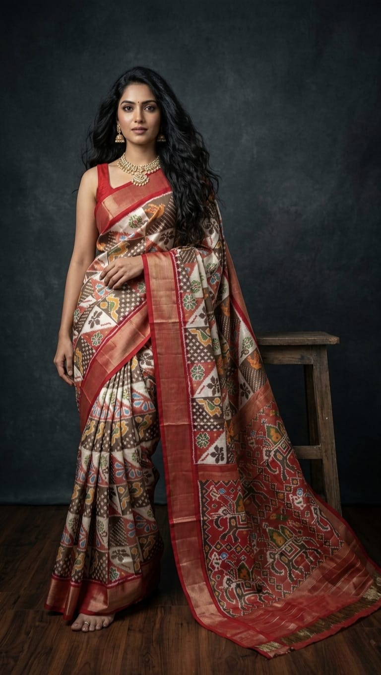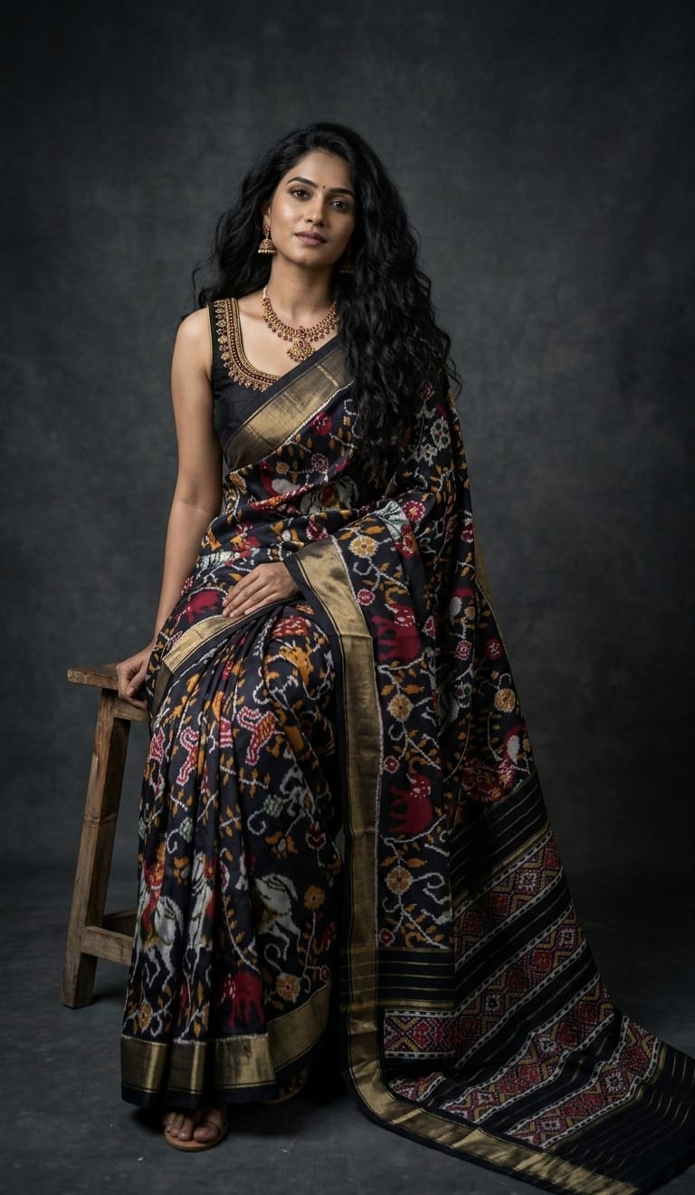 The Pochampally Pure Silk Saree is a symbol of South Indian weaving excellence. Originating from Bhoodan Pochampally, these sarees are famous for their intricate Ikat dyeing technique, where the yarns are tie-dyed before weaving to create stunning geometric and traditional patterns.