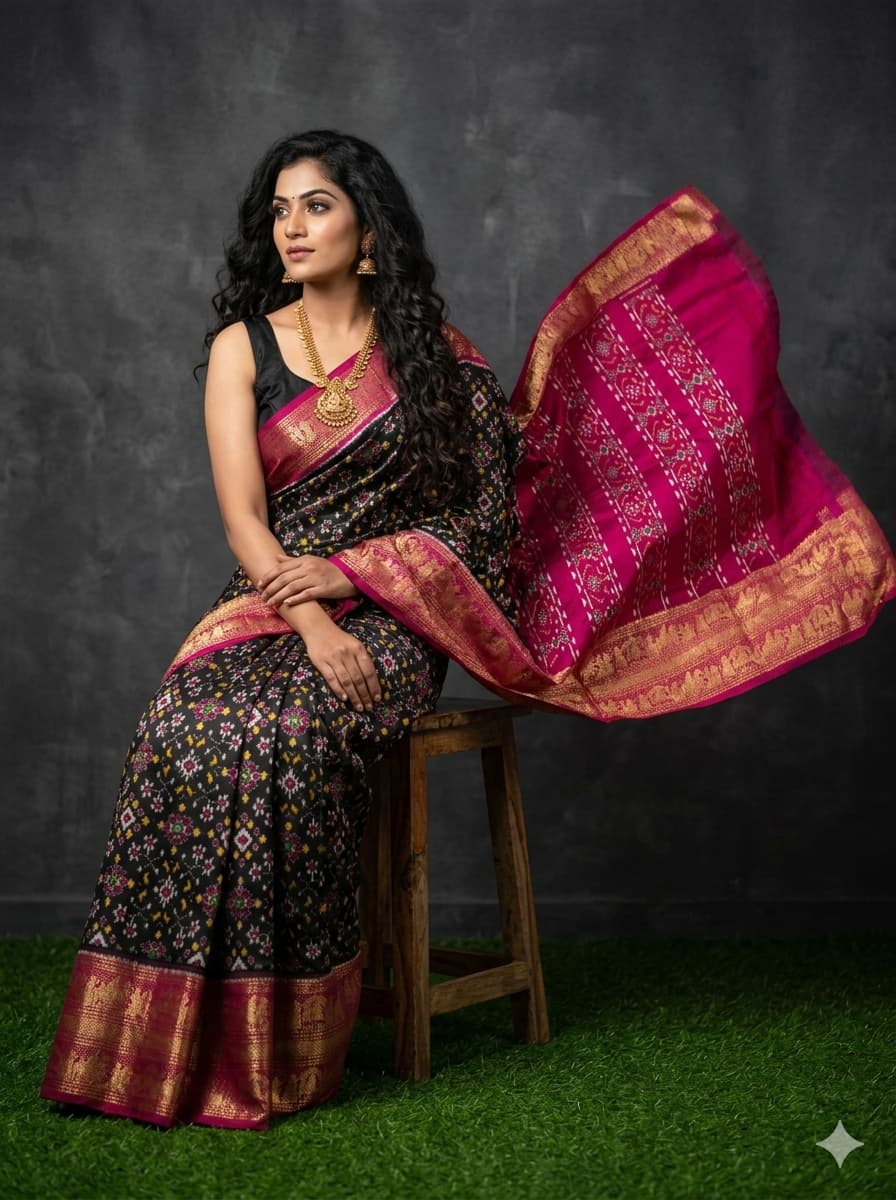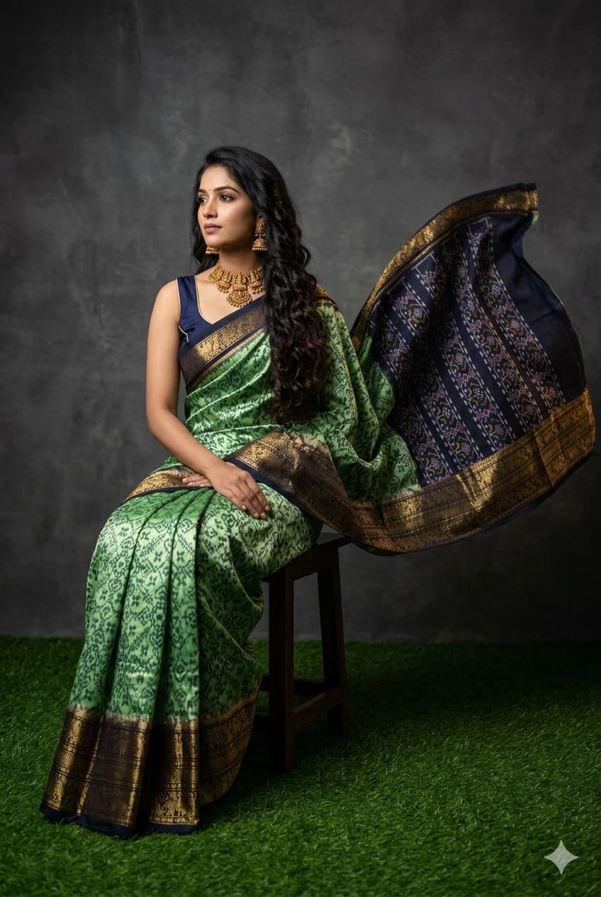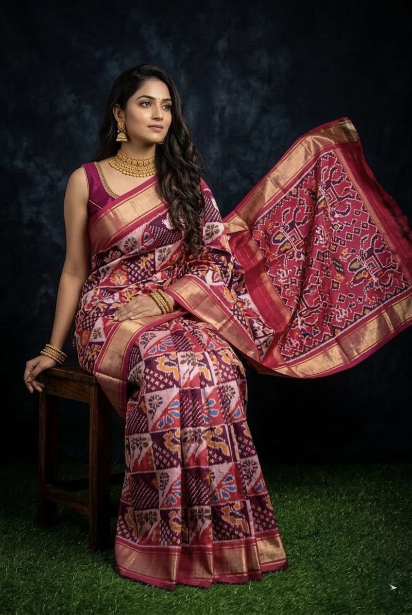 The Pochampally Pure Silk Saree is a symbol of South Indian weaving excellence. Originating from Bhoodan Pochampally, these sarees are famous for their intricate Ikat dyeing technique, where the yarns are tie-dyed before weaving to create stunning geometric and traditional patterns.